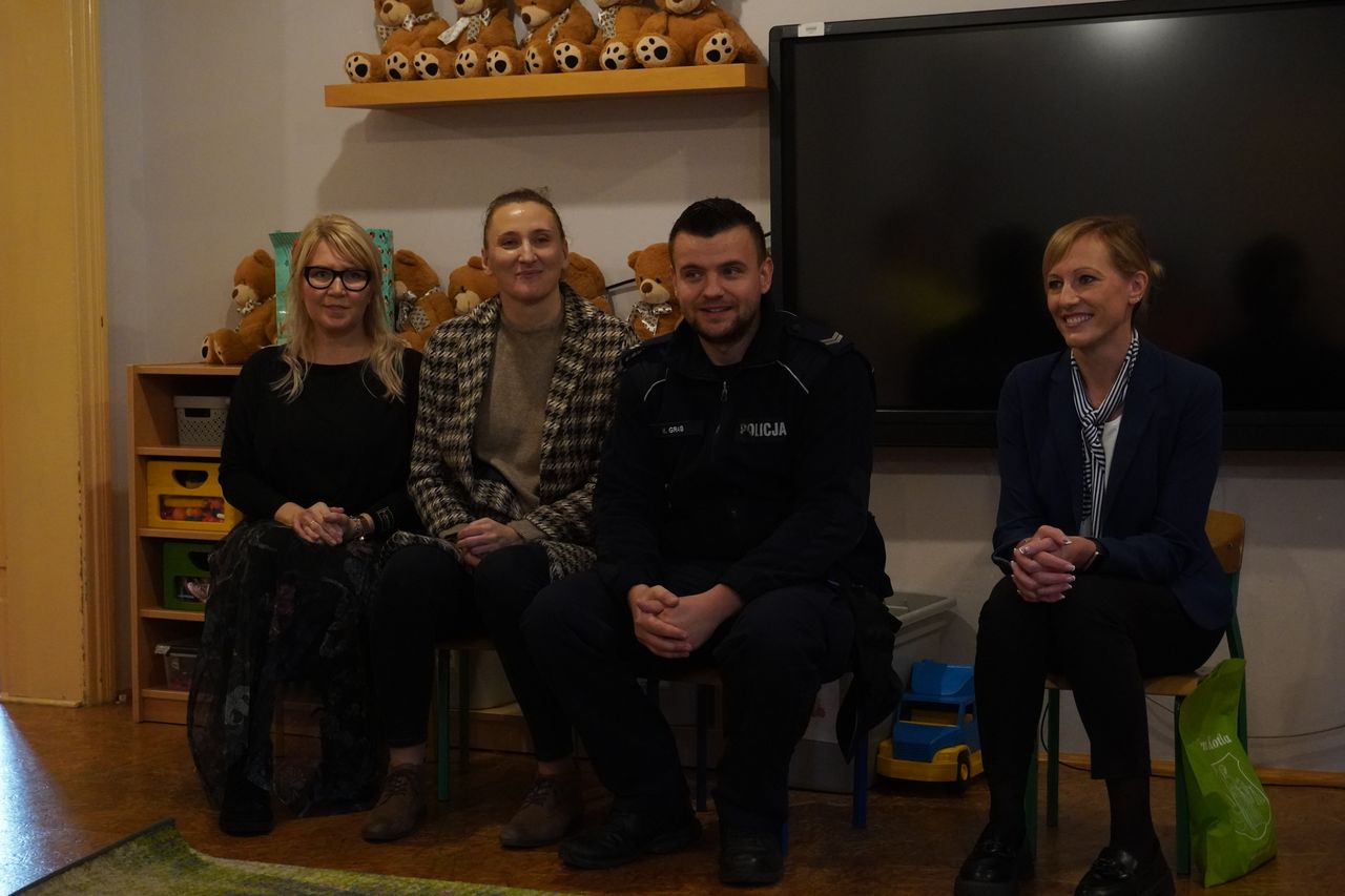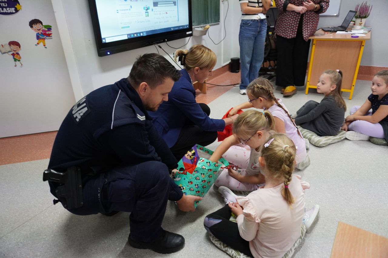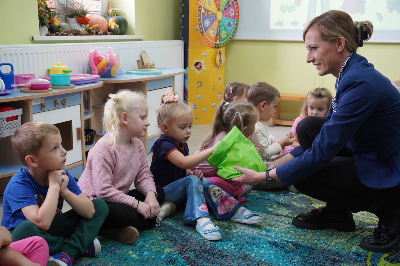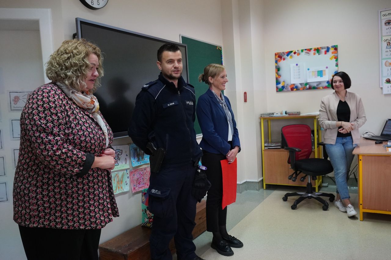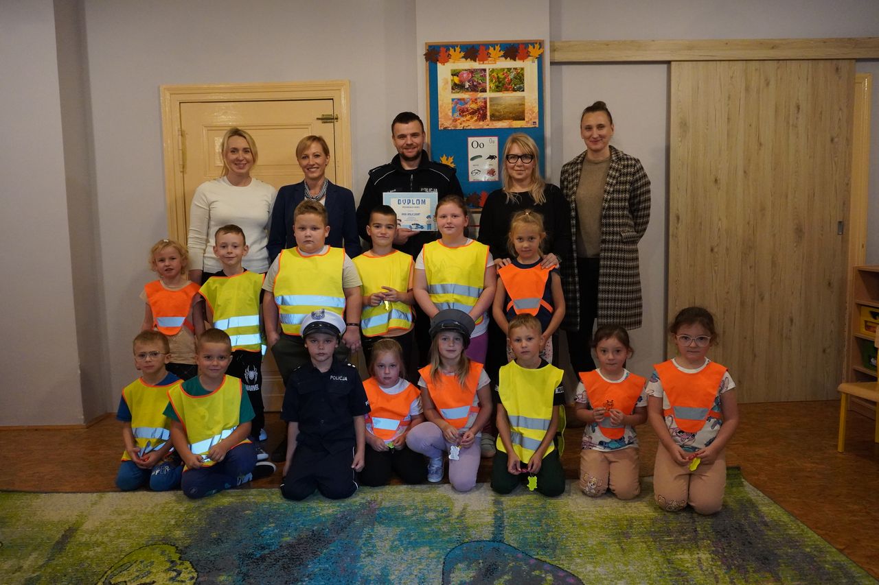Dziś (02.10) w ramach akcji "Bezpieczna droga do szkoły", placówki oświatowe na terenie Gminy Kotla odwiedzili: Wójt Kamila Suchocka-Szperlik, pracownik urzędu Dorota Bartczak oraz starszy sierżant Maciej Grab Dzielnicowy Rejonu Gminy Kotla, którzy w trosce o bezpieczeństwo pytali najmłodszych z ich wiedzy na temat bezpieczeństwa ruchu drogowego. Dzieci z klas I-III Szkoły Podstawowej im. Kornela Makuszyńskiego w Kotli, Oddziału Przedszkolnego w Chociemyśli, Przedszkola Publicznego w Kotli oraz Niepublicznego Przedszkola „Chatka Puchatka” w Głogówku wzorowo odpowiadały na zadane zagadki i otrzymały nagrody: Pan Policjant rozdawał cukierki, natomiast Wójt dawała odblaski zakupione z budżetu Gminy Kotla, które zostały przypięte do tornistrów.