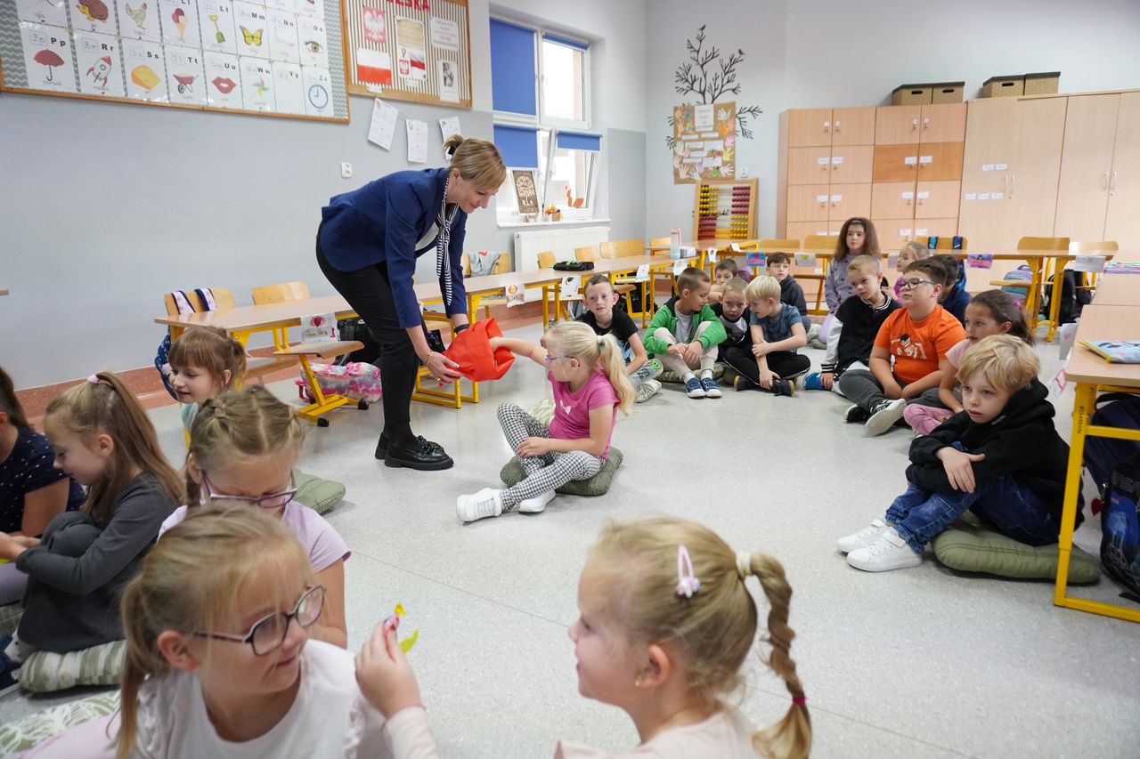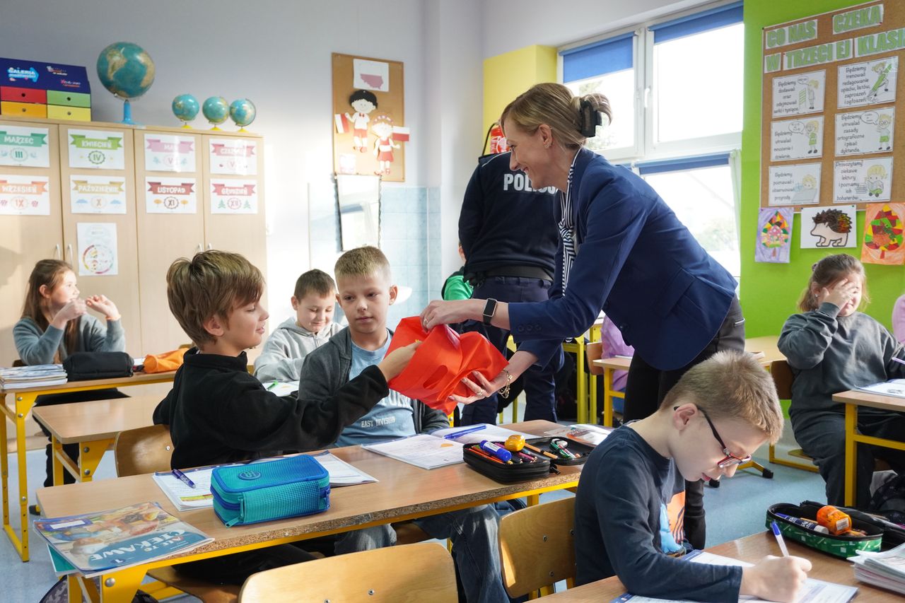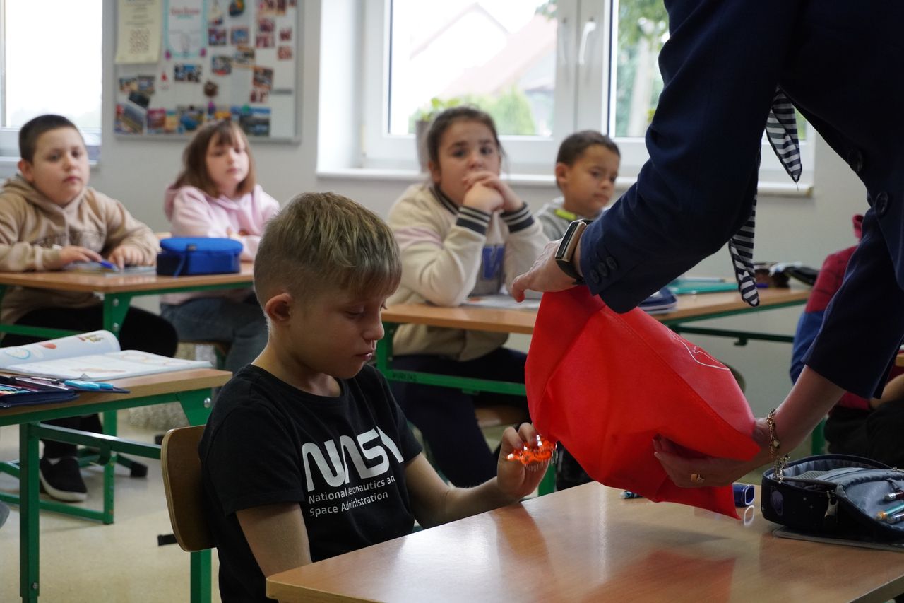- „Bezpieczeństwo to rzecz kluczowa zwłaszcza w obecnym okresie, kiedy już coraz szybciej za oknem jest ciemno. Odblaski, które dzieci przywiesiły do swoich tornistrów z pewnością poprawią ich widoczność w takie dni.” – podkreśliła Wójt Kamila Suchocka-Szperlik.