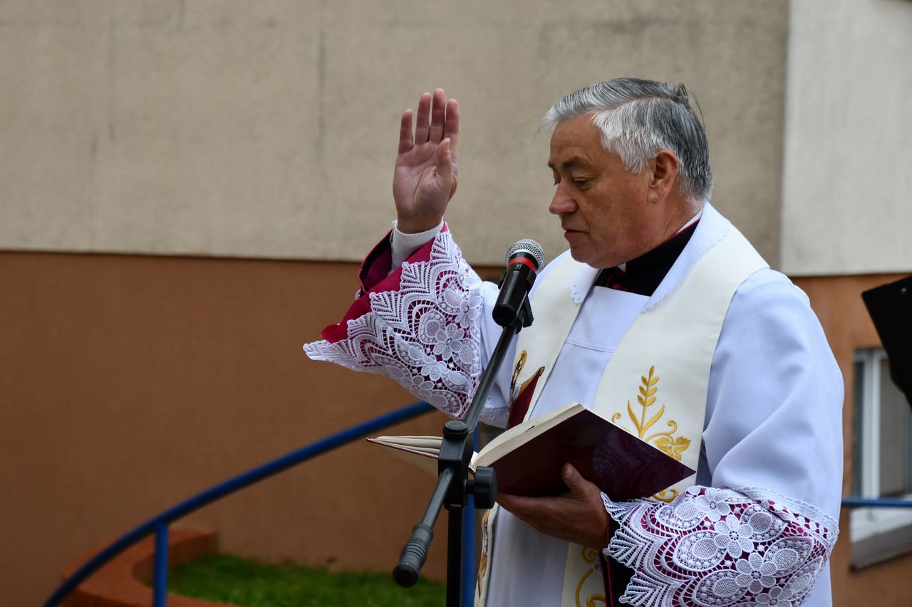 Uroczystość rozpoczęło odsłonięcie i poświęcenie tablicy pamiątkowej umieszczonej na budynku szkoły.