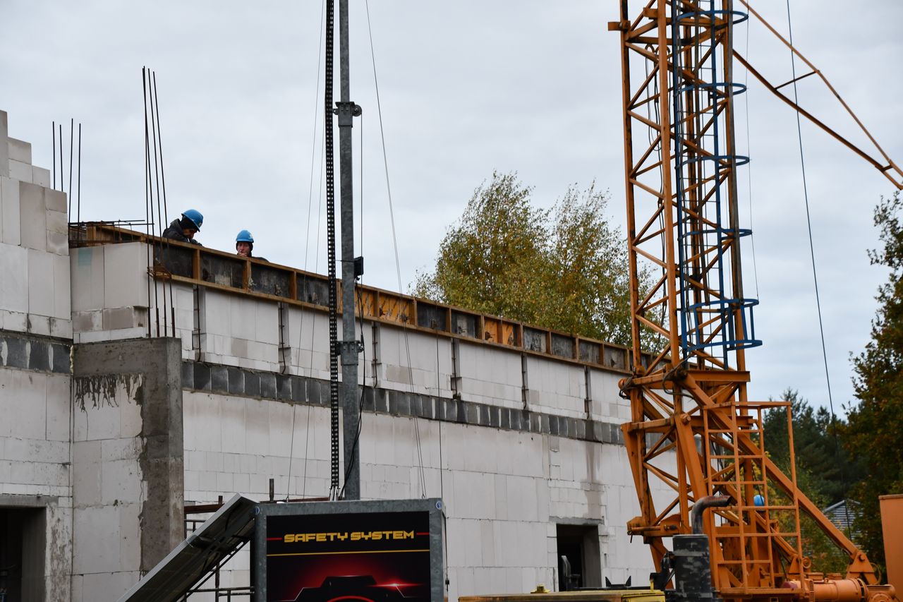 Dziś odwiedziliśmy plac budowy nowego przedszkola w Kotli, gdzie prace postępują zgodnie z harmonogramem. Na miejscu widać już zarys przyszłej placówki – stoją ściany, a ekipa budowlana powoli wstawia okna. Wylany został również strop, co oznacza zakończenie kolejnego, ważnego etapu inwestycji.