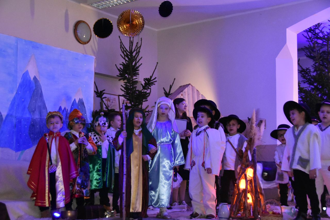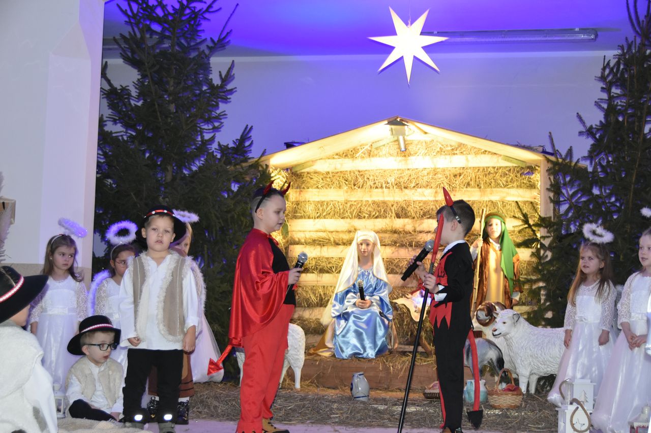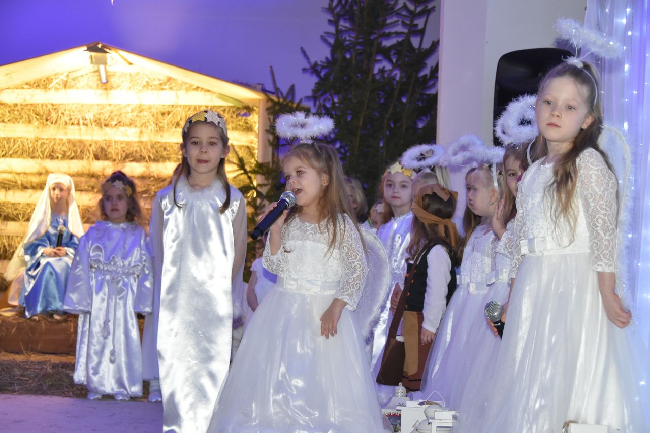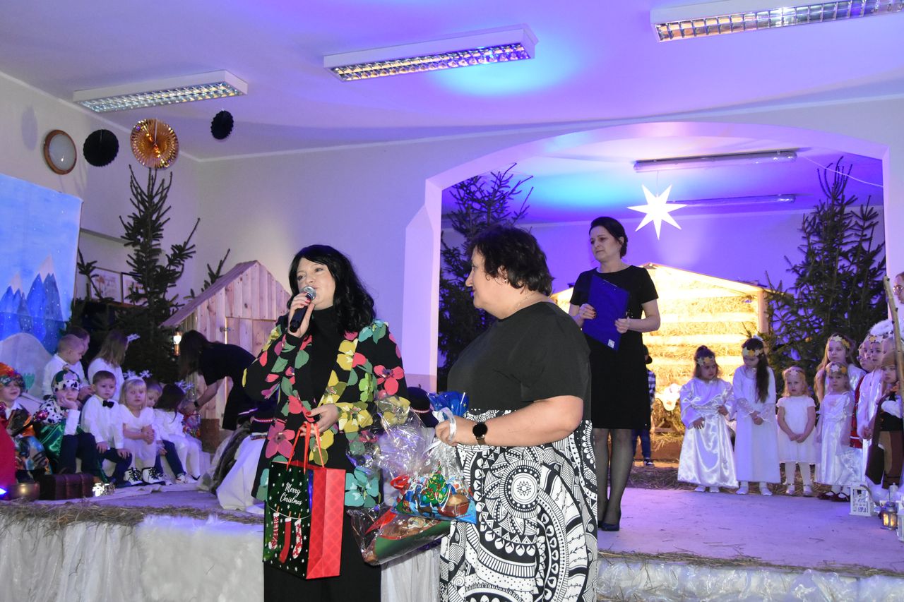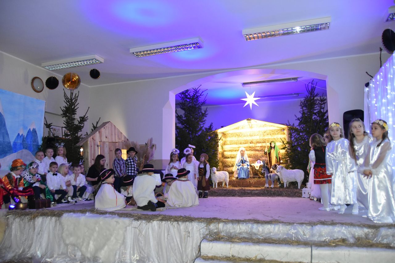 Przygotowany przez dzieci program artystyczny zachwycił publiczność. Mali artyści z wielkim zaangażowaniem wcielili się w swoje role, prezentując kolędy, wiersze i scenki bożonarodzeniowe. Ich występ został nagrodzony gromkimi brawami, a na twarzach widzów nie brakowało uśmiechów i wzruszenia.
