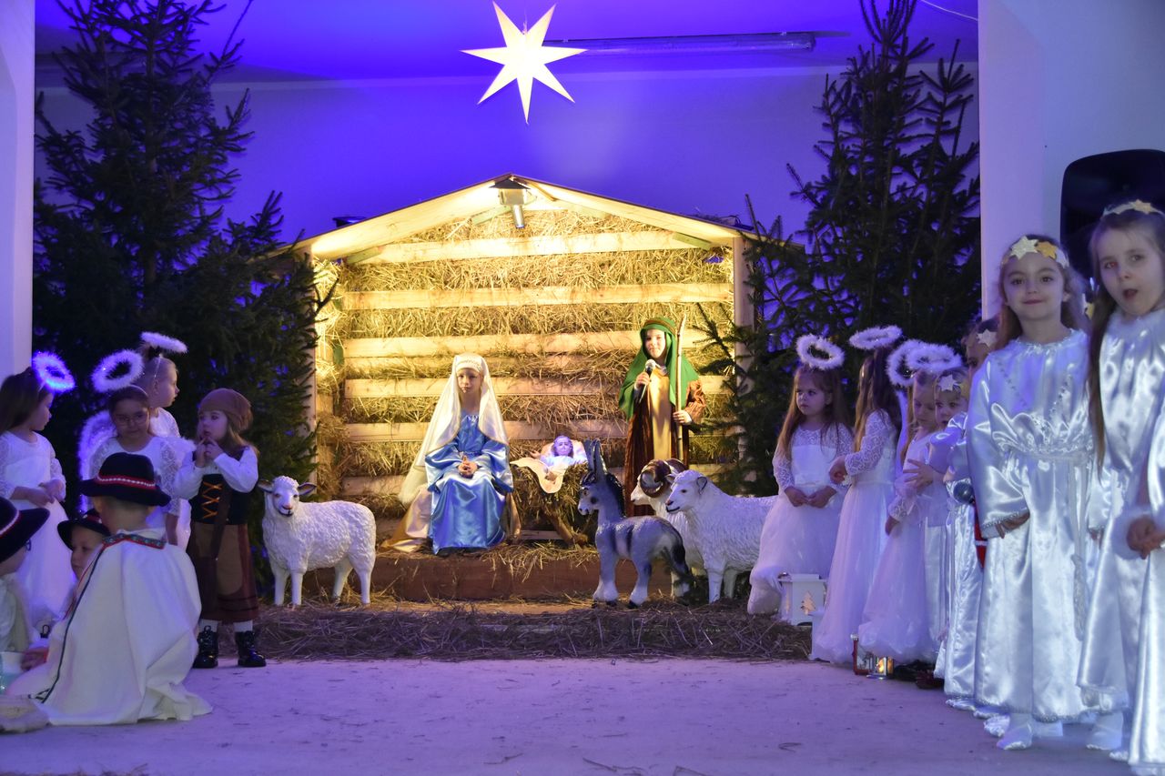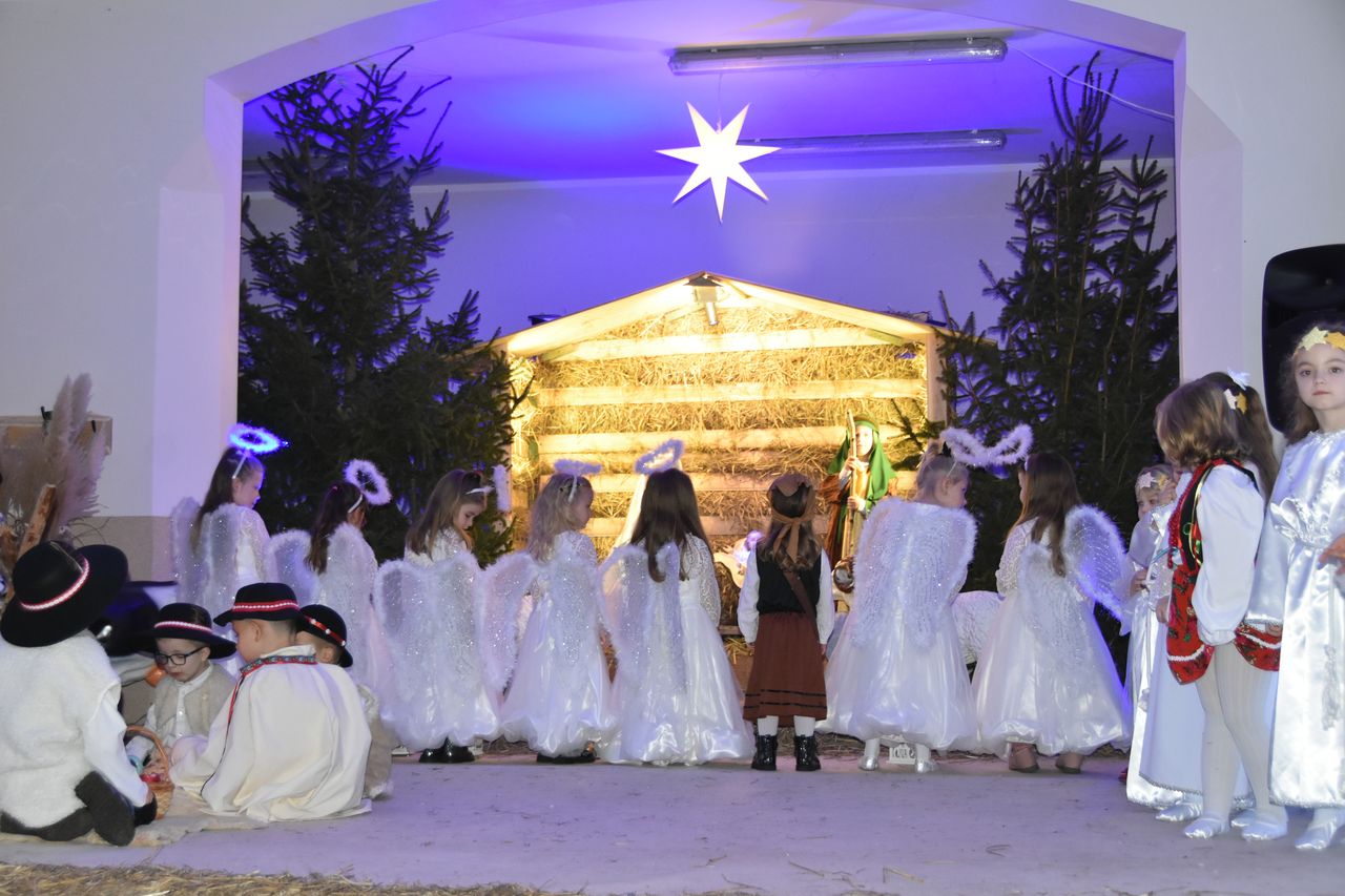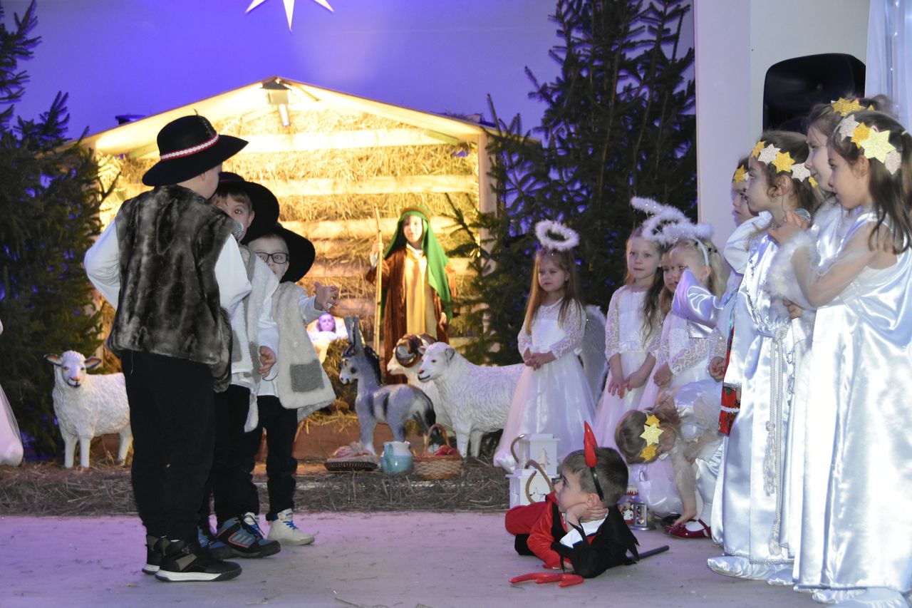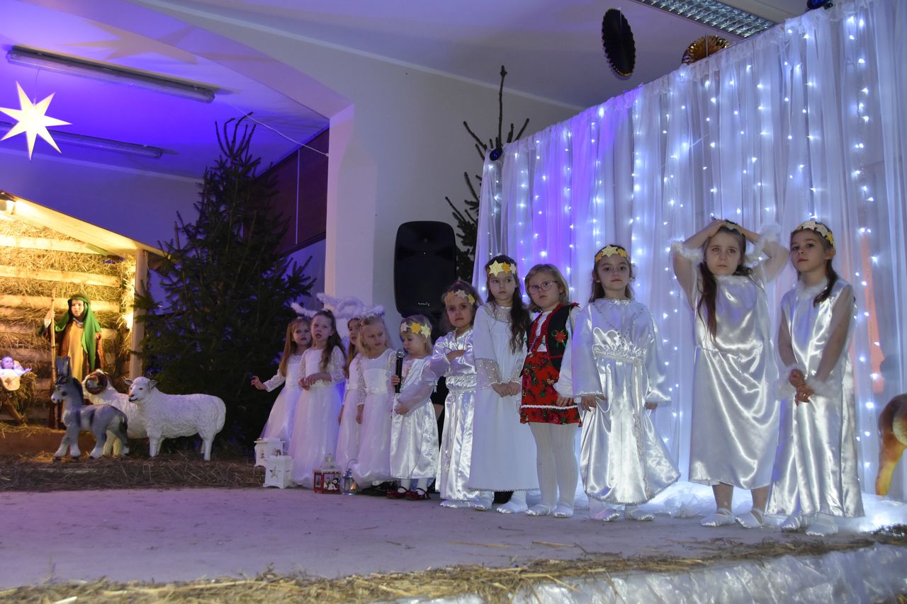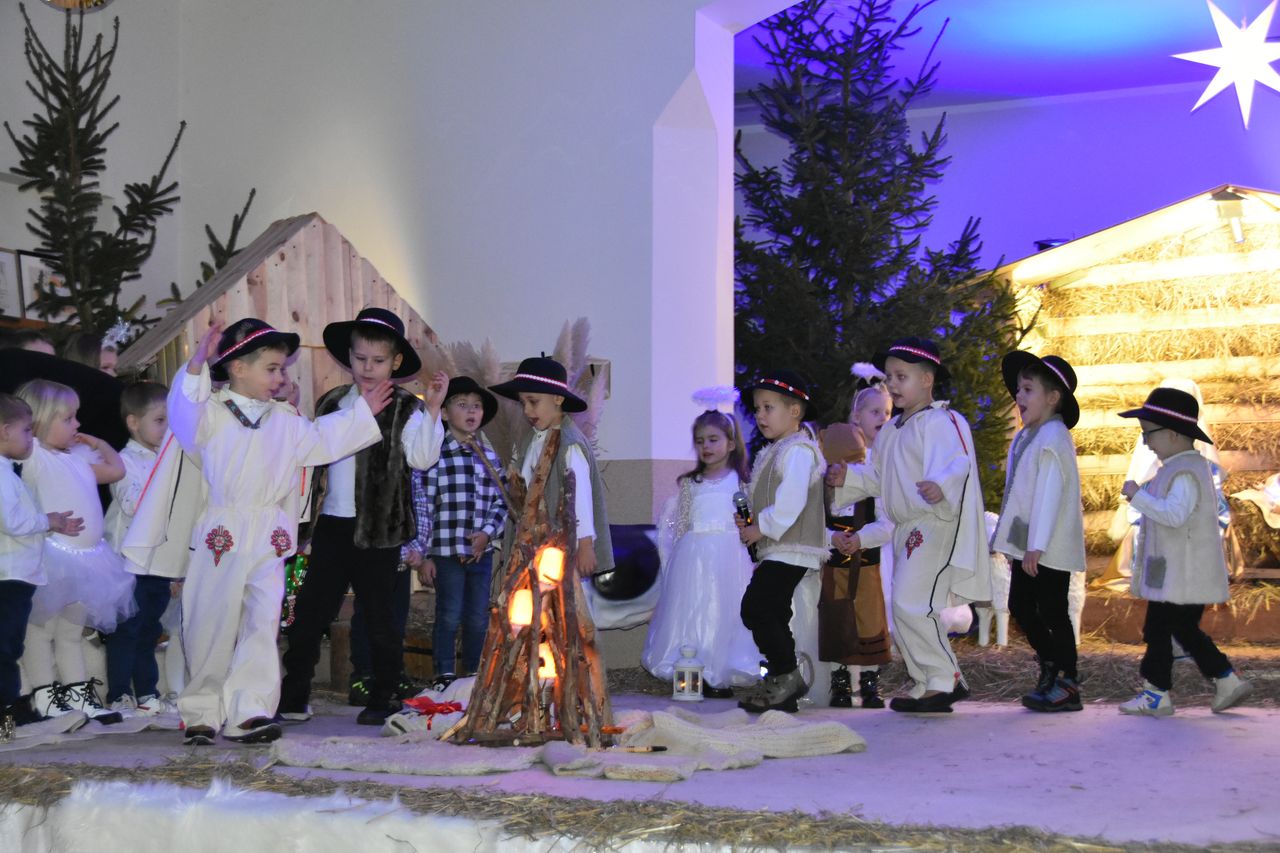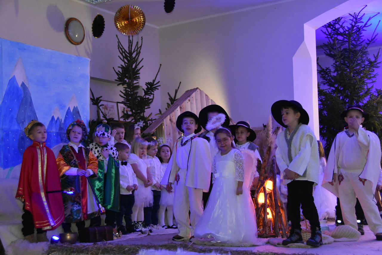 Przygotowany przez dzieci program artystyczny zachwycił publiczność. Mali artyści z wielkim zaangażowaniem wcielili się w swoje role, prezentując kolędy, wiersze i scenki bożonarodzeniowe. Ich występ został nagrodzony gromkimi brawami, a na twarzach widzów nie brakowało uśmiechów i wzruszenia.