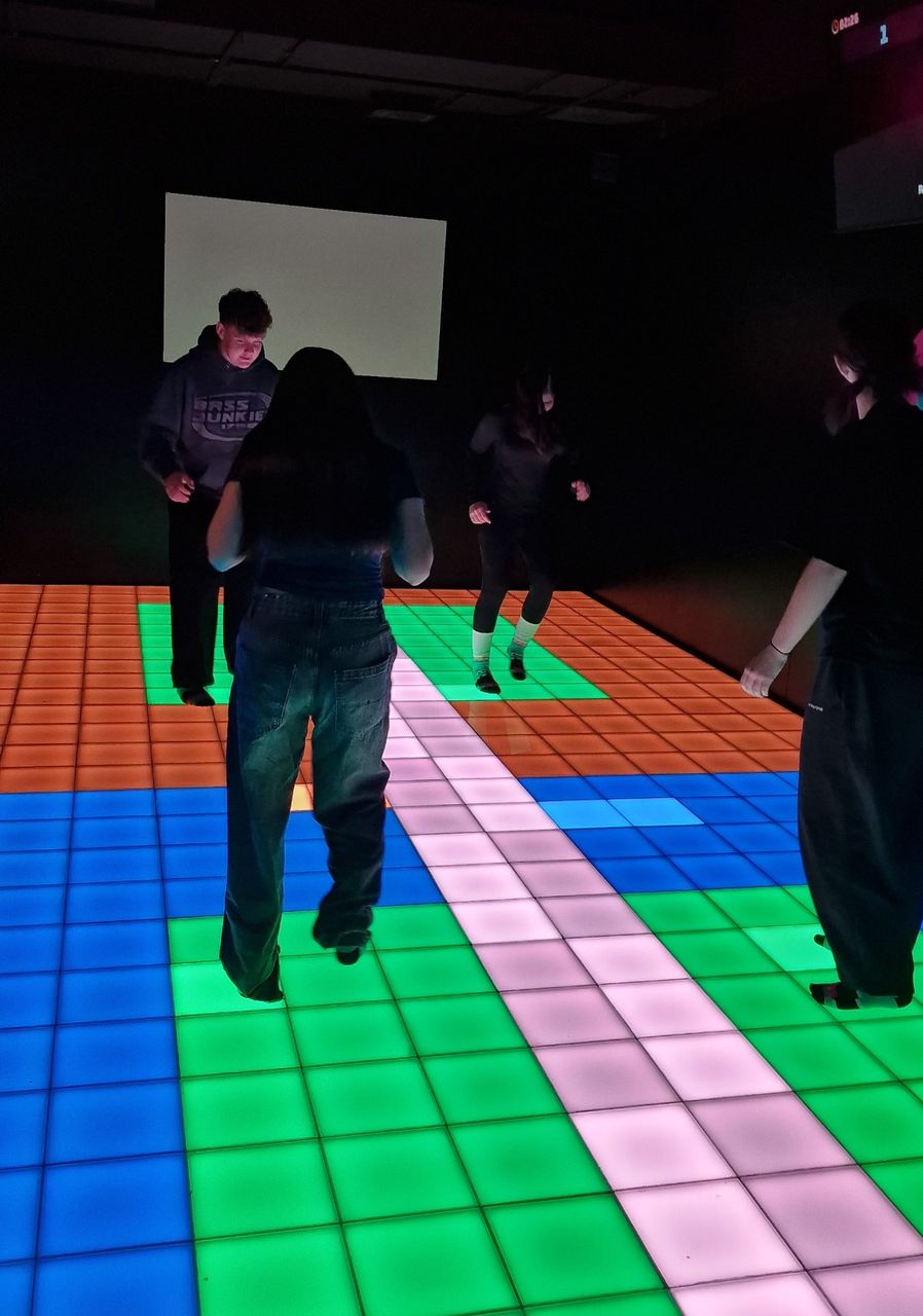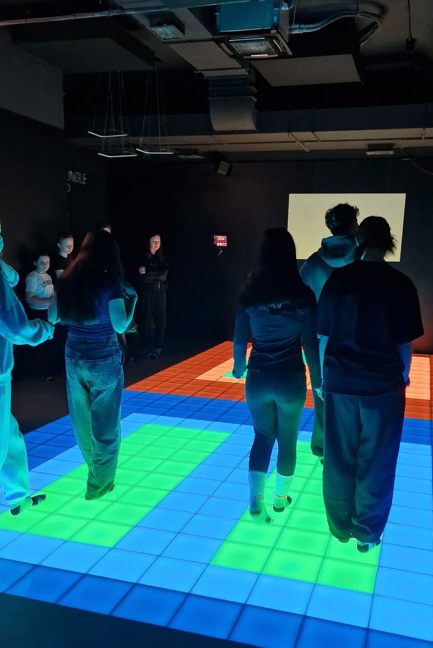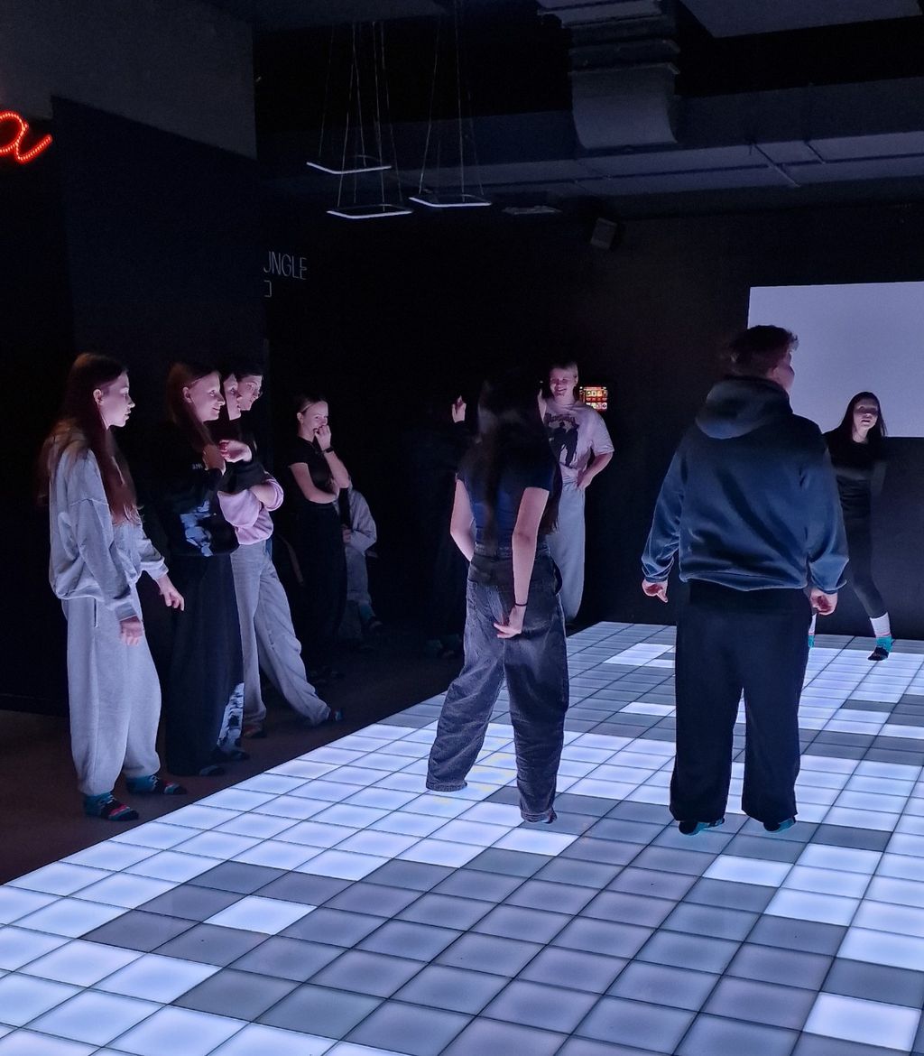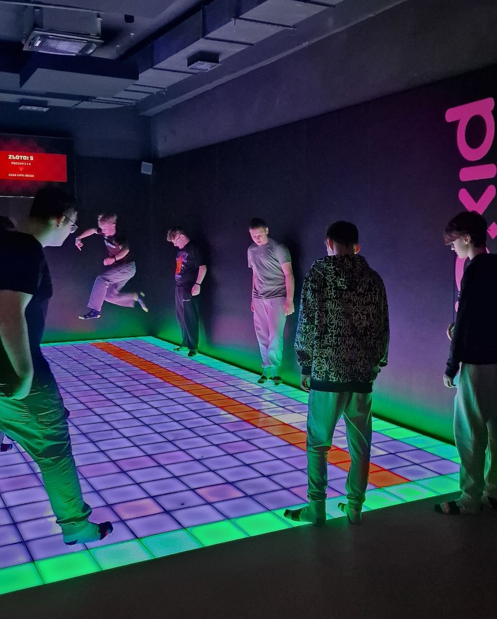 Uczniowie wzięli również udział w zajęciach Pixel XL – nowoczesnej, interaktywnej formie aktywnej rozrywki. Gry na podświetlanych matach rozwijały refleks, koordynację ruchową, logiczne myślenie oraz sprzyjały integracji zespołu.