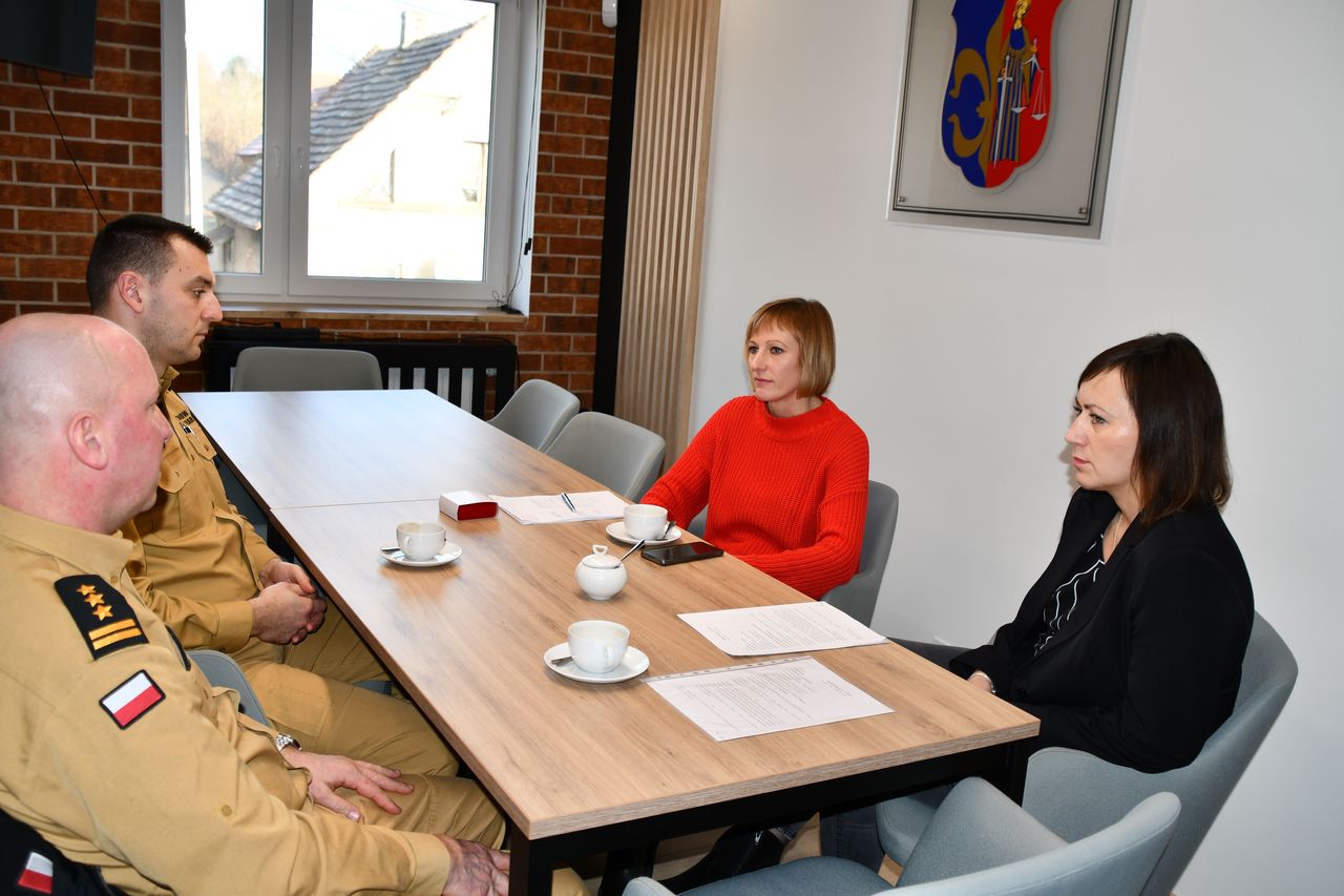 Dziś w Urzędzie Gminy Kotla odbyło się spotkanie Wójt Kamili Suchockiej-Szperlik oraz Zastępcy Wójta Barbary Rybak z przedstawicielami Państwowej Straży Pożarnej w Głogowie. W spotkaniu uczestniczył Komendant Powiatowy PSP st. bryg. Paweł Dziadosz wraz ze swoim zastępcą st. kpt. Tomaszem Michalskim. Rozmowy dotyczyły szeroko rozumianej współpracy pomiędzy samorządem Gminy Kotla, jednostkami Ochotniczych Straży Pożarnych działającymi na terenie gminy oraz Państwową Strażą Pożarną. Istotnym punktem rozmów było również wdrażanie zapisów ustawy o ochronie ludności i obronie cywilnej.