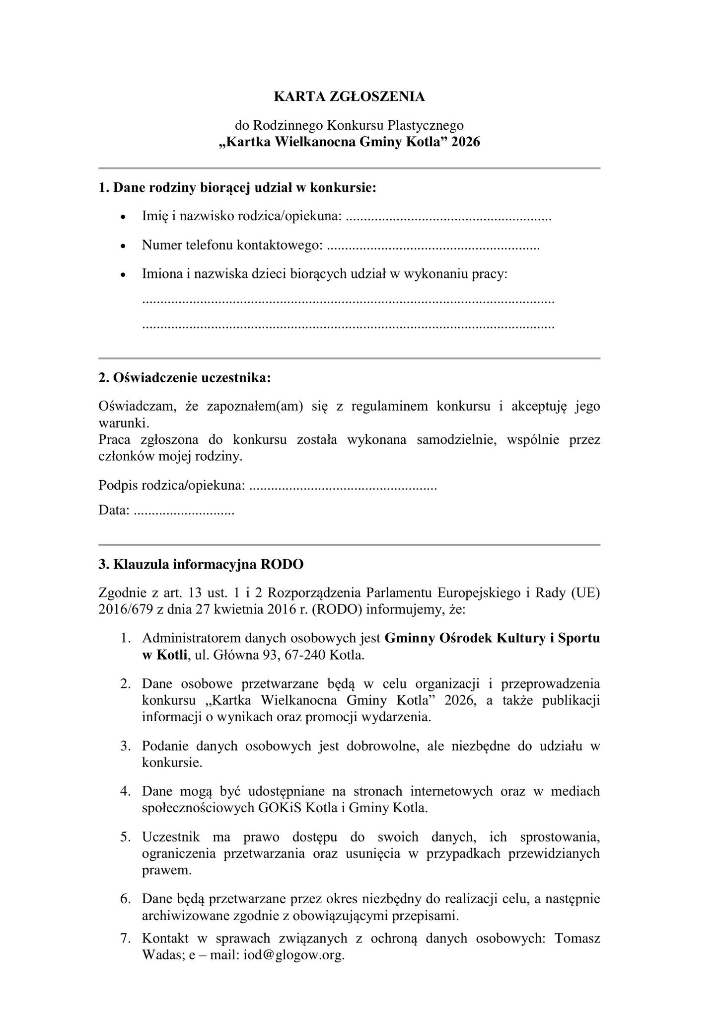 Zapraszamy rodziny do wzięcia udziału w konkursie plastycznym. Szczegóły w regulaminie.