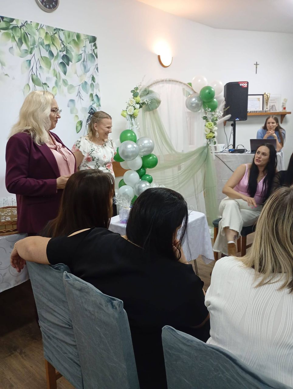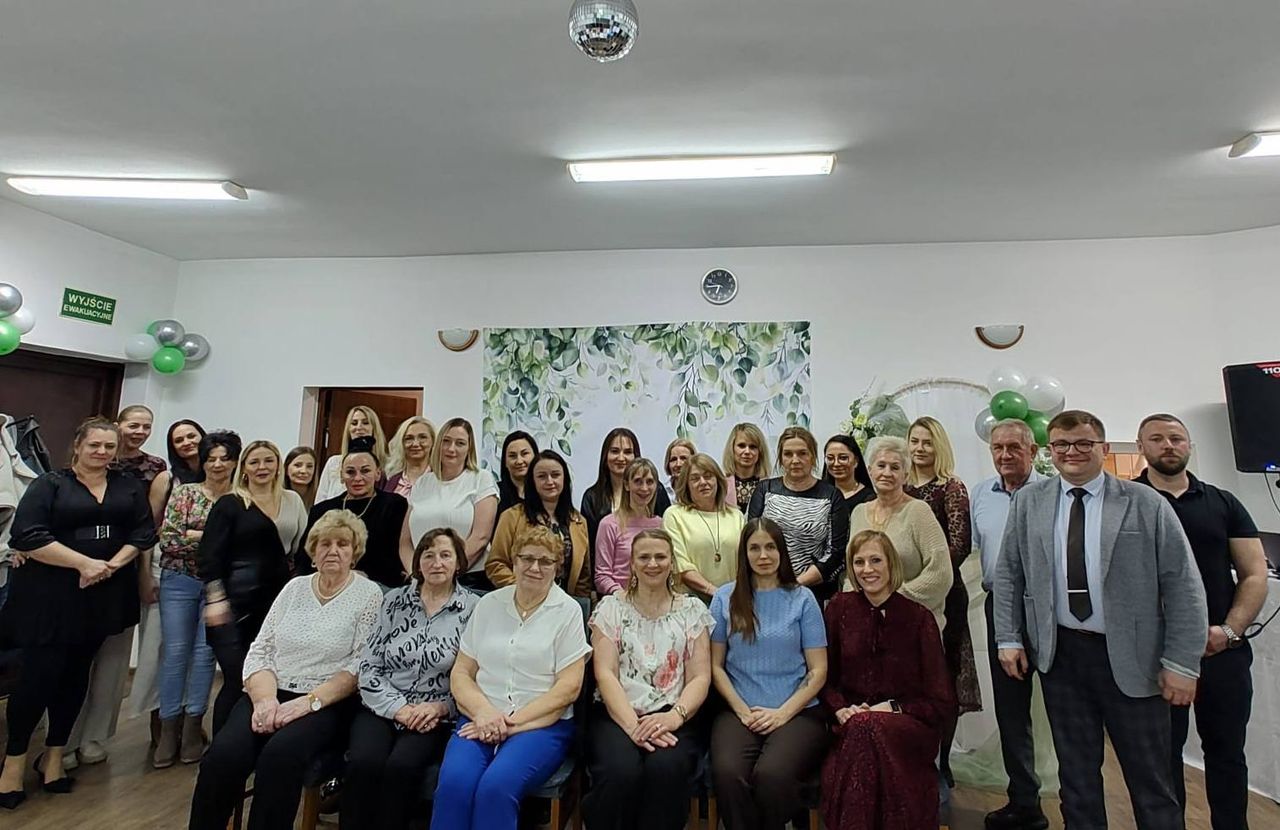 Na uczestniczki czekała pięknie udekorowana sala, pyszne jedzenie, gry i konkursy, a przede wszystkim świetna zabawa. Spotkanie rozpoczęło się od złożenia życzeń, wręczenia kwiatów i słodkiego upominku przez Pana Sołtysa i Grzegorza Firutę członka Rady sołeckiej. W spotkaniu na zaproszenie organizatorów udział wzięli również Wójt Kamila Suchocka-Szperlik i Przewodniczący Rady Grzegorz Stroiński.