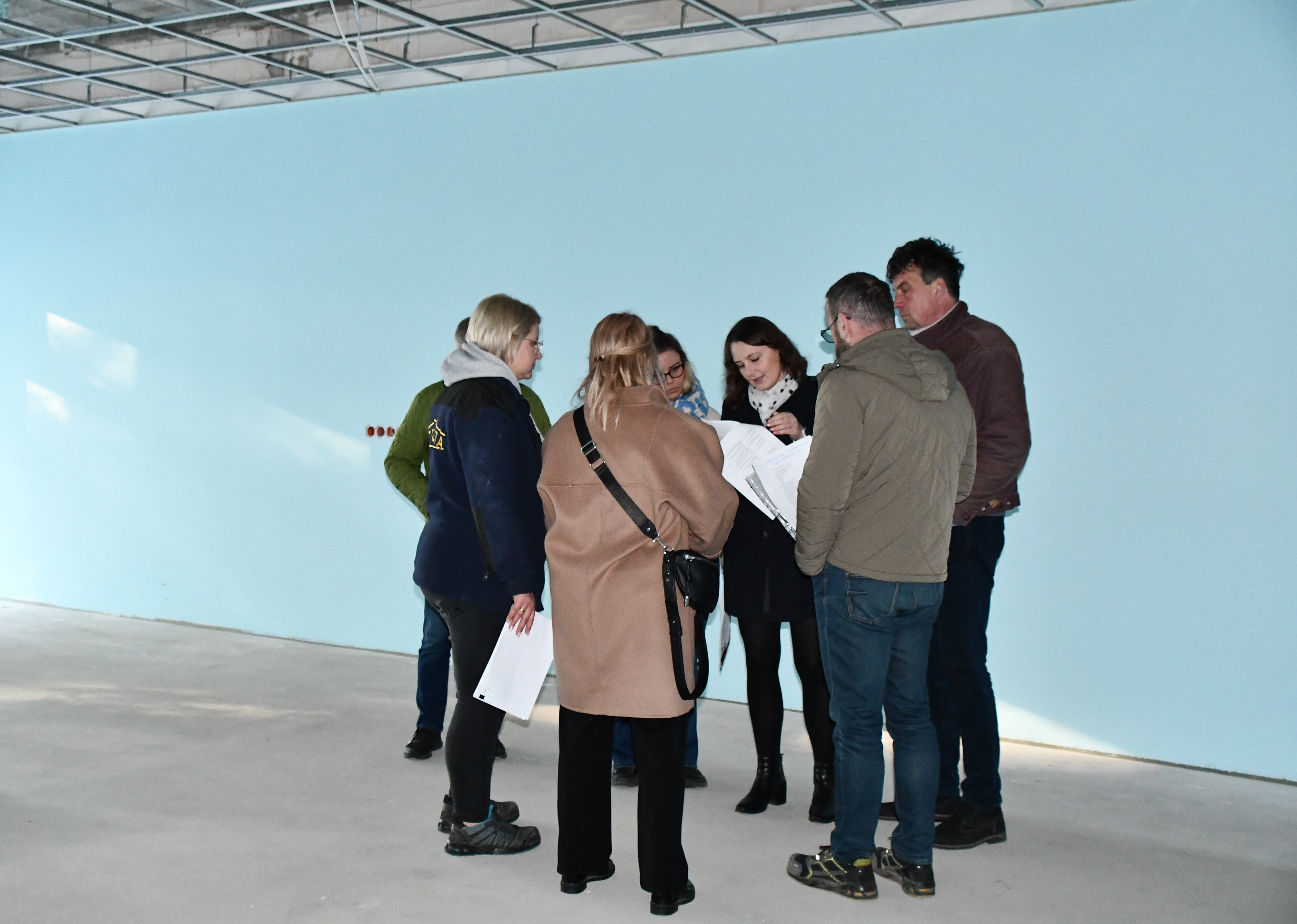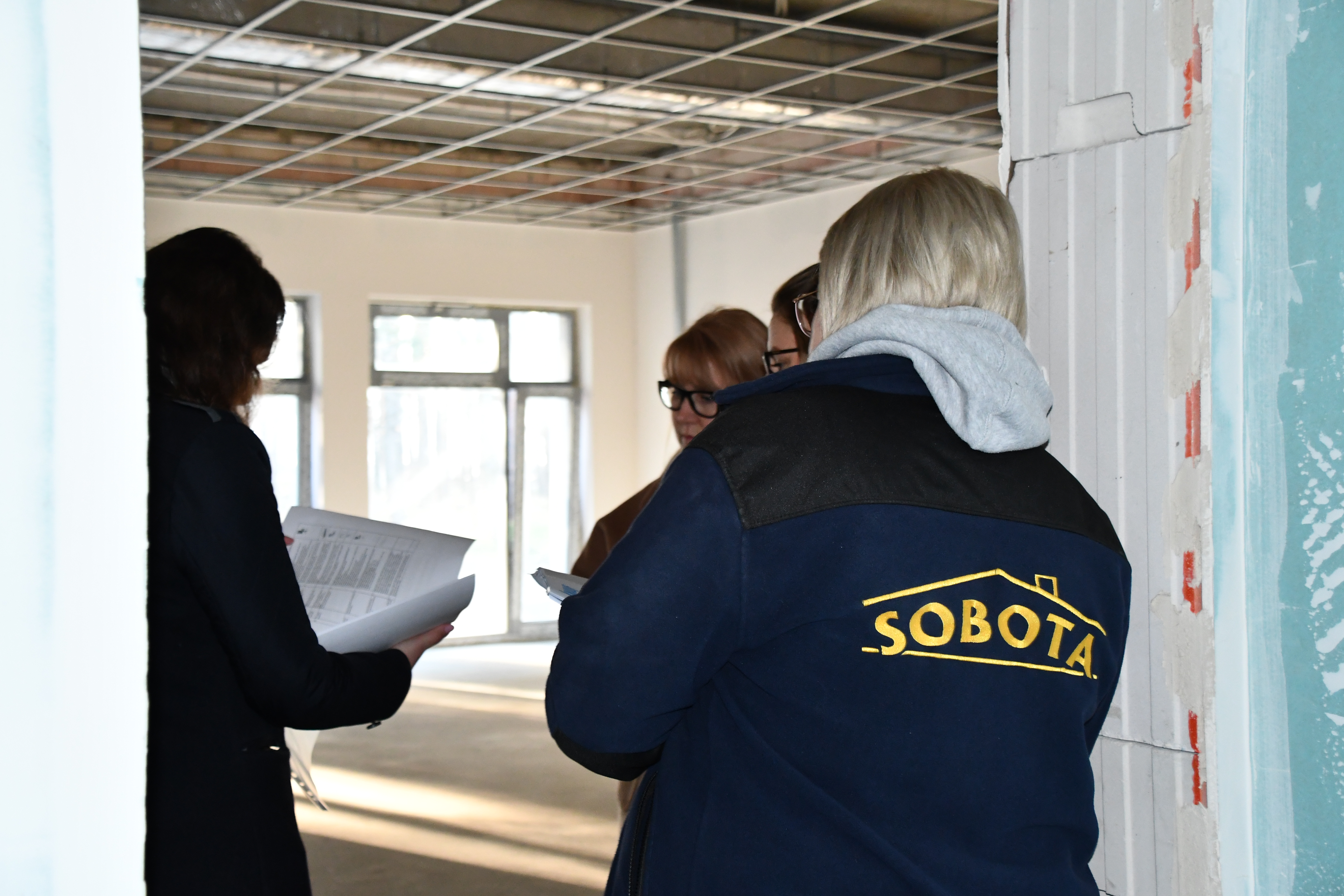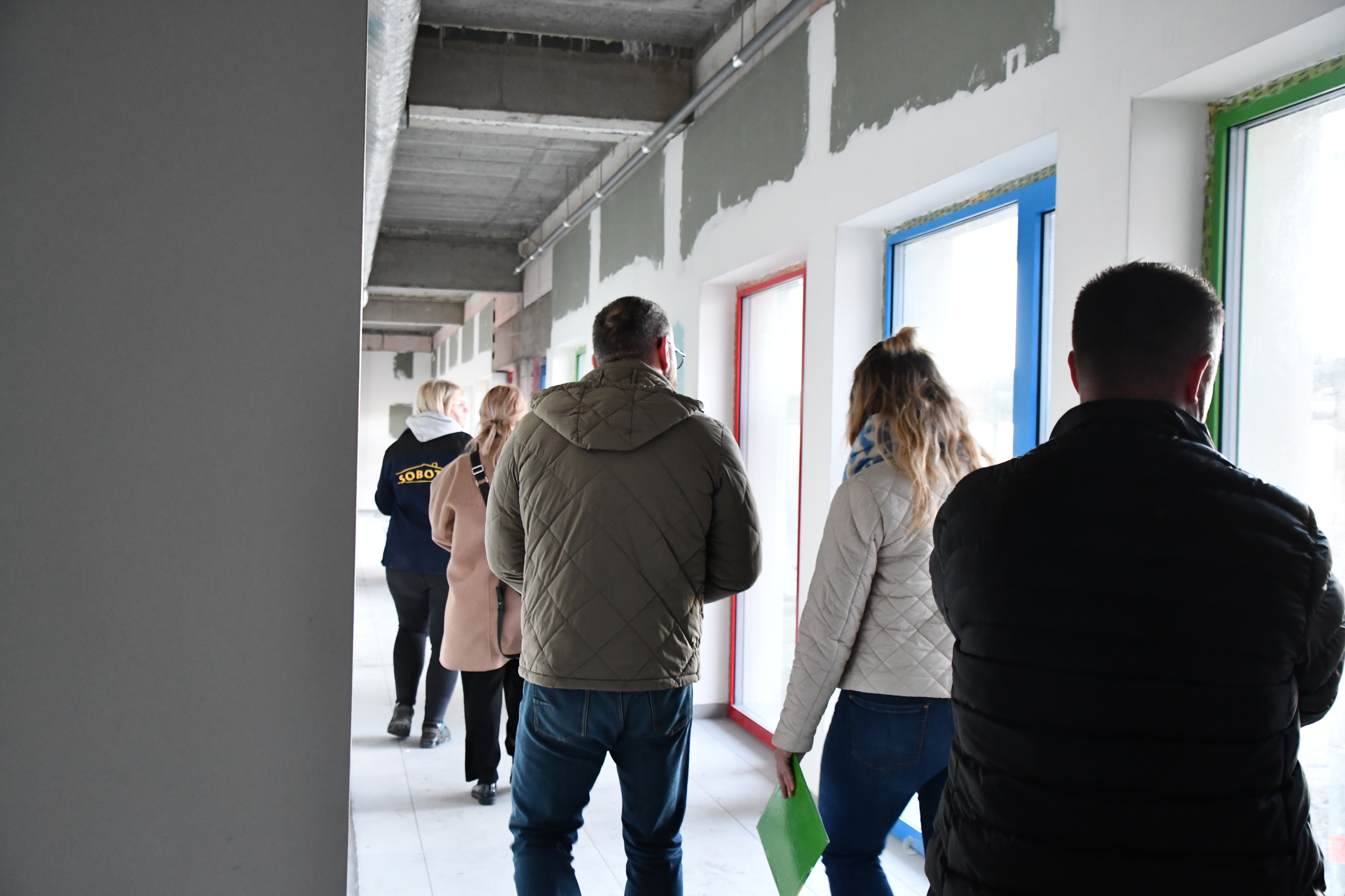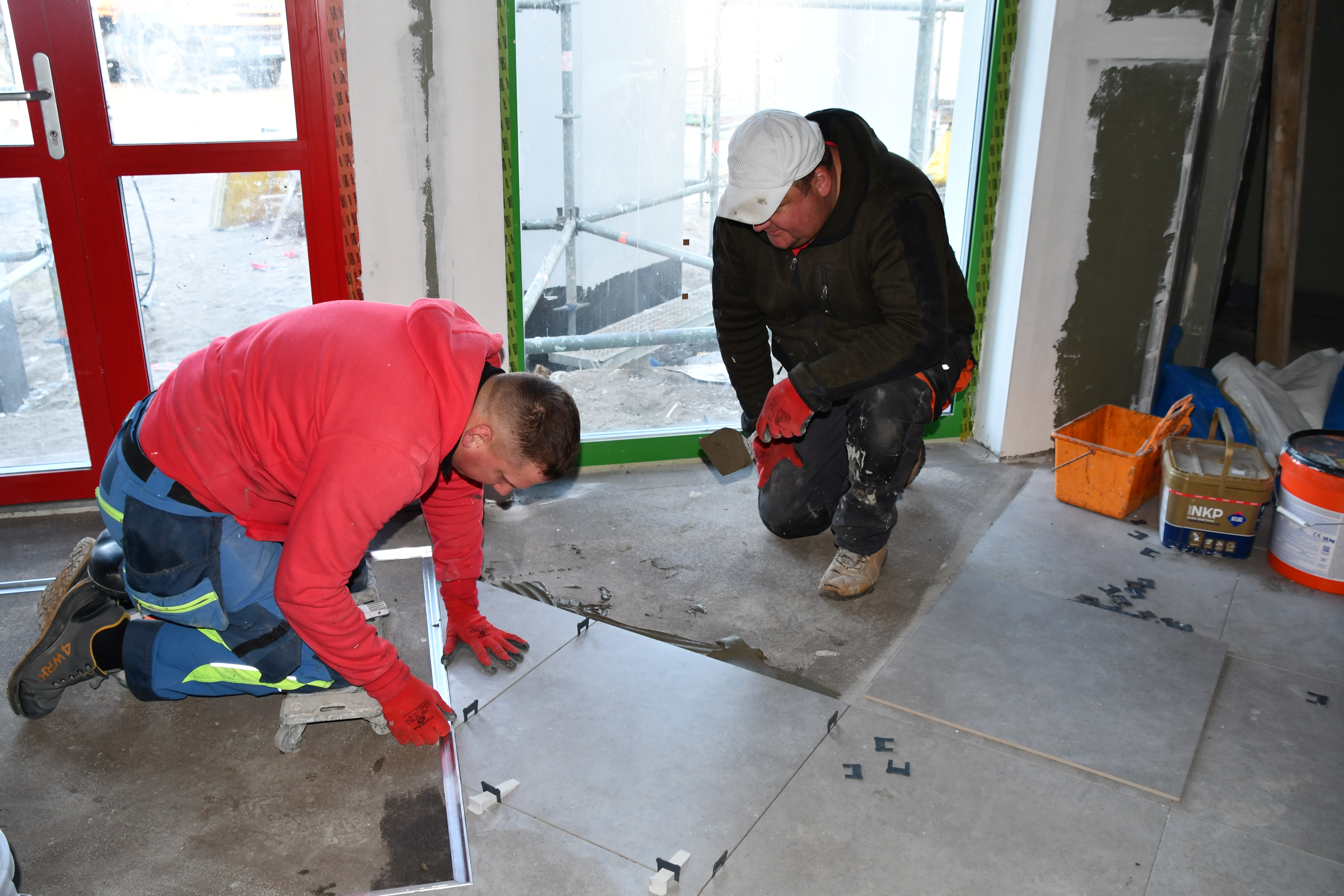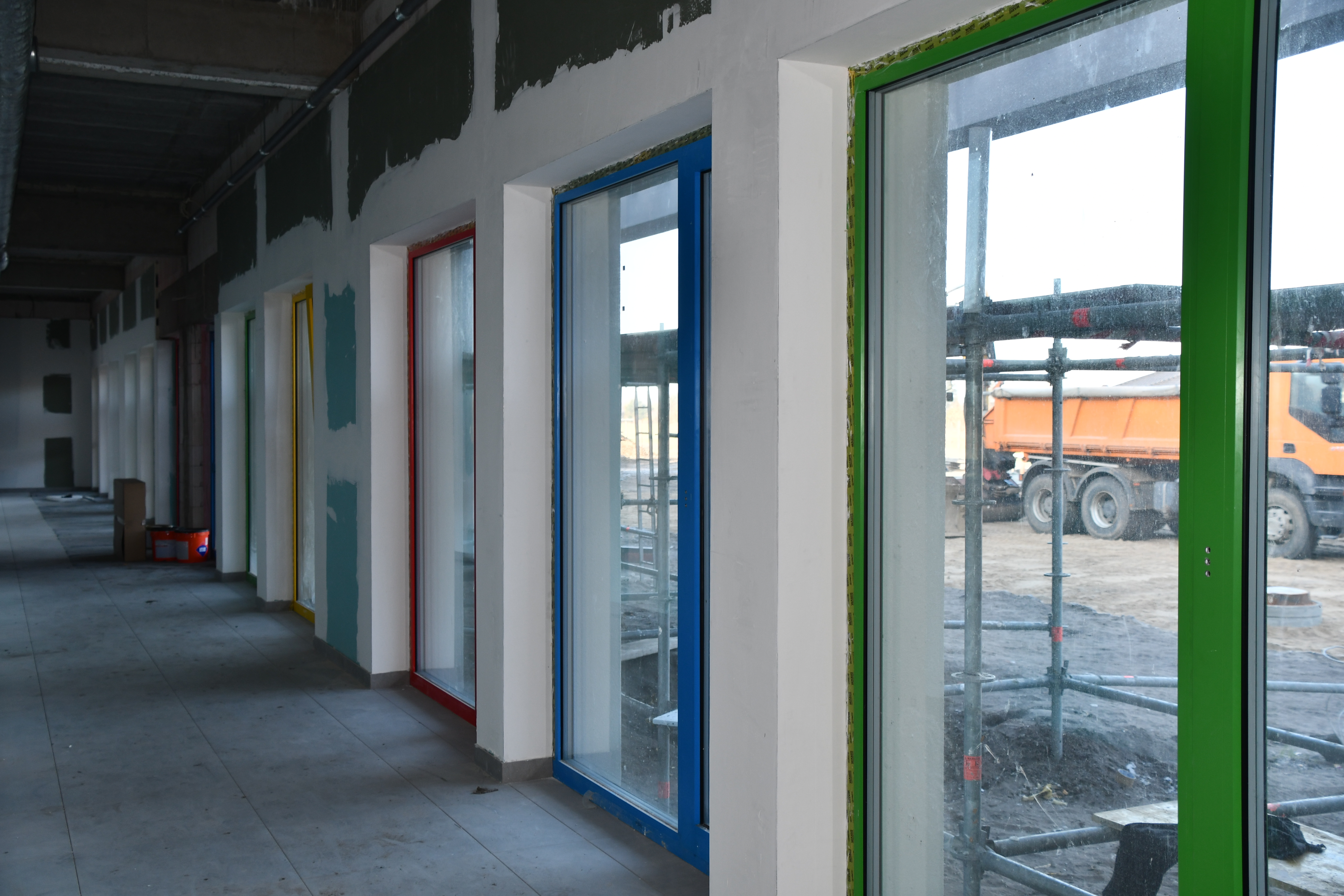 Na terenie inwestycji trwają prace wykończeniowe związane z zagospodarowaniem terenu. Równolegle realizowane są prace wewnątrz budynku oraz prace przy elewacji, które stopniowo nadają obiektowi jego ostateczny wygląd.