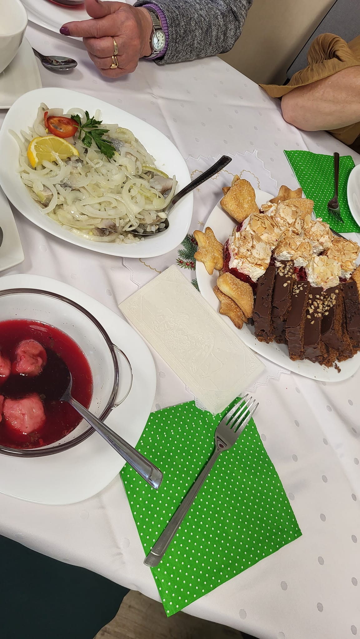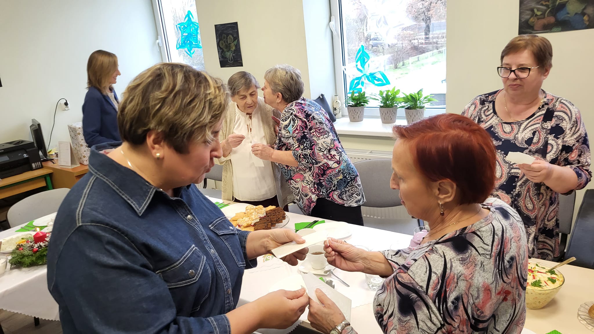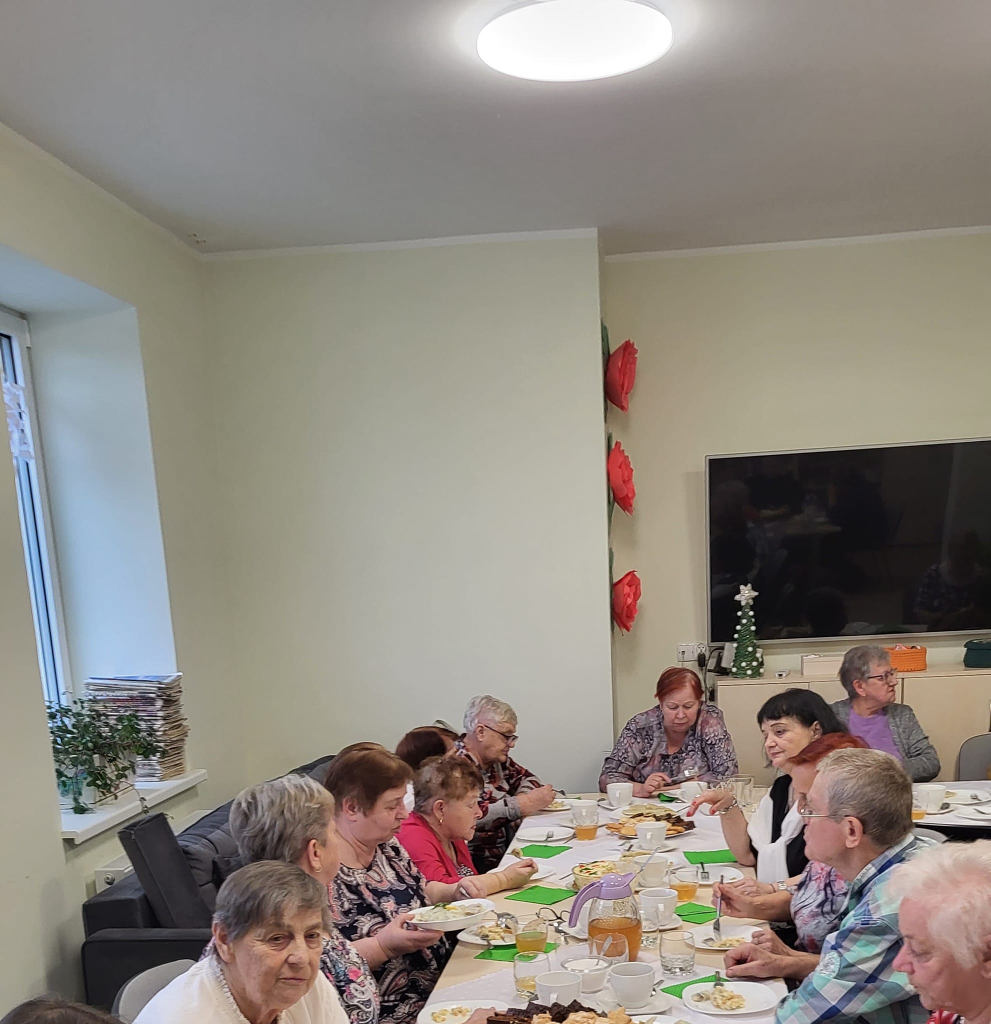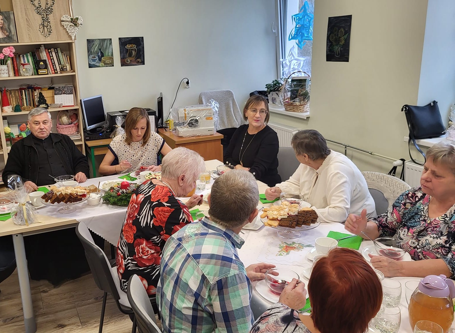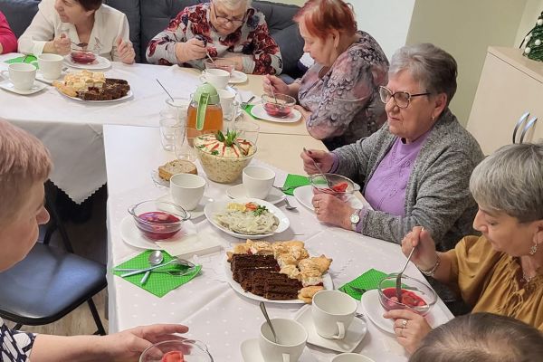 Następnie zaproszeni goście złożyli uczestnikom Klubu Seniora świąteczne. Uczestnicy Klubu Seniora przygotowali pyszne, tradycyjne potrawy wigilijne, Spotkanie było okazją do przyjacielskich rozmów ale przede wszystkim jednak do spędzenia czasu w życzliwej, radosnej i rodzinnej atmosferze.