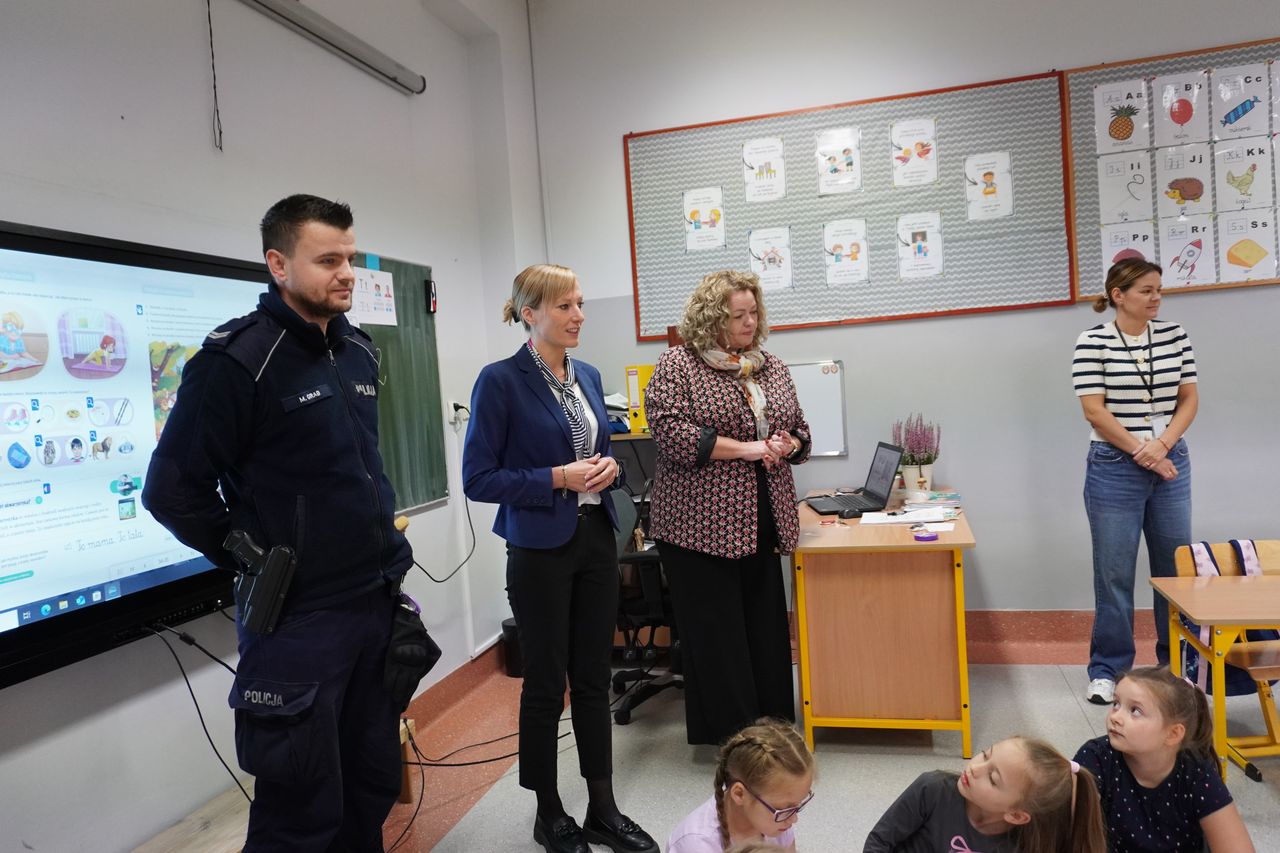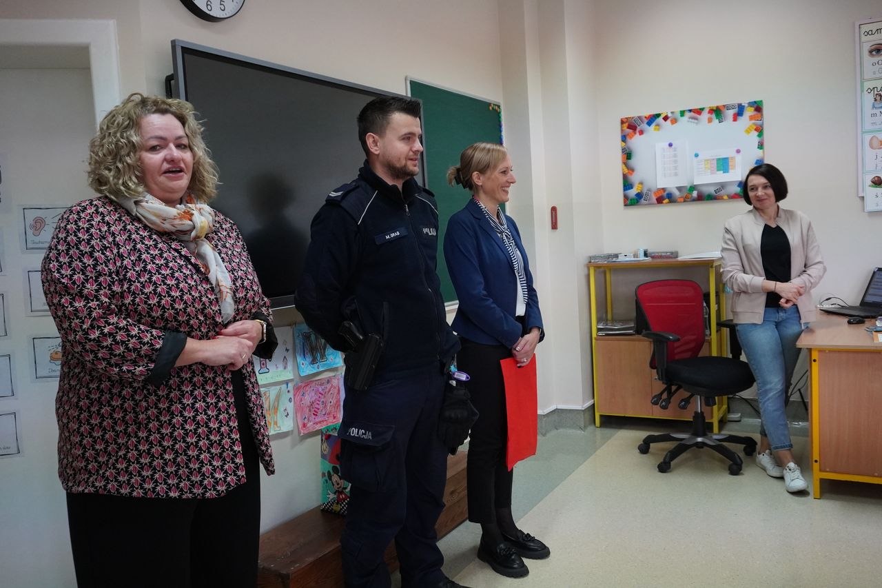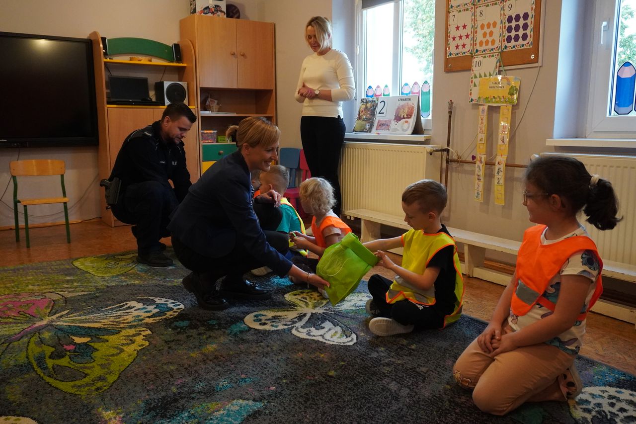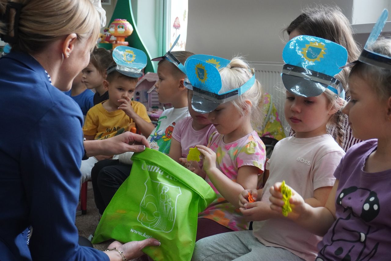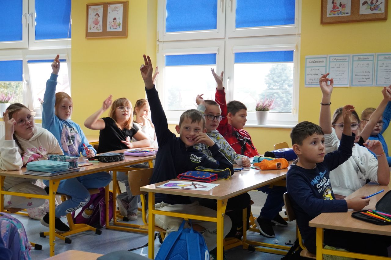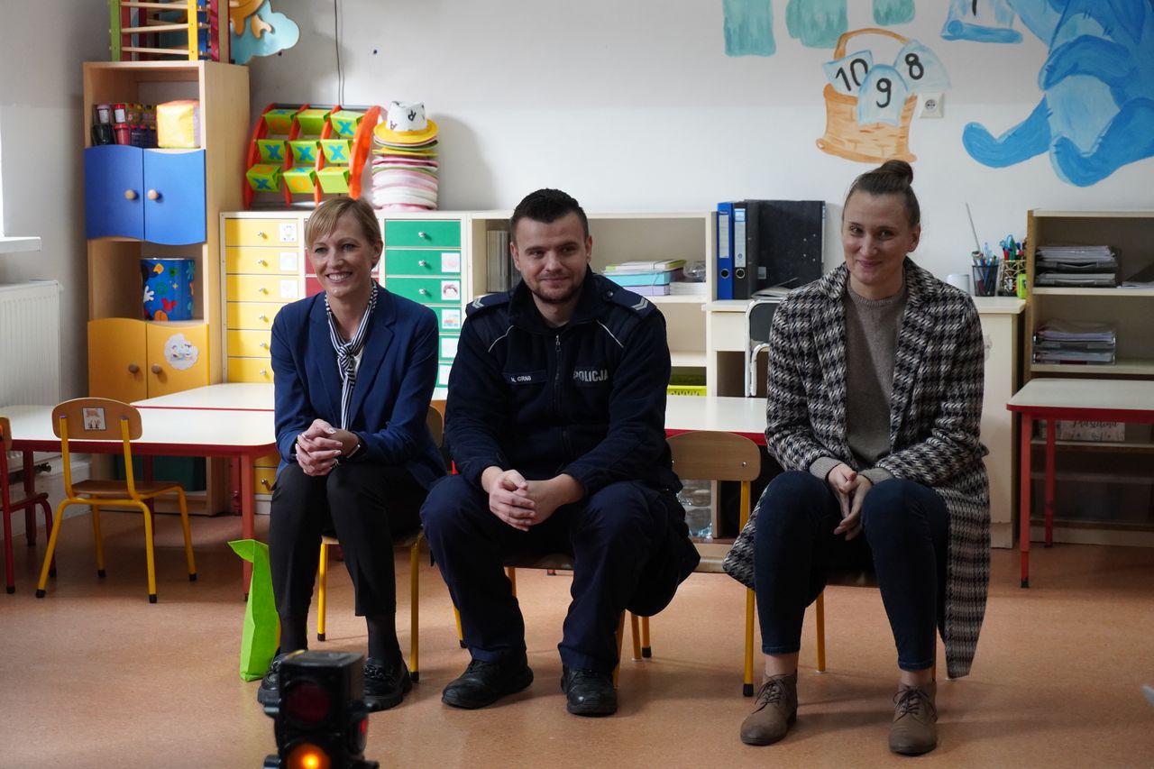 Dziś (02.10) w ramach akcji "Bezpieczna droga do szkoły", placówki oświatowe na terenie Gminy Kotla odwiedzili: Wójt Kamila Suchocka-Szperlik, pracownik urzędu Dorota Bartczak oraz starszy sierżant Maciej Grab Dzielnicowy Rejonu Gminy Kotla, którzy w trosce o bezpieczeństwo pytali najmłodszych z ich wiedzy na temat bezpieczeństwa ruchu drogowego. Dzieci z klas I-III Szkoły Podstawowej im. Kornela Makuszyńskiego w Kotli, Oddziału Przedszkolnego w Chociemyśli, Przedszkola Publicznego w Kotli oraz Niepublicznego Przedszkola „Chatka Puchatka” w Głogówku wzorowo odpowiadały na zadane zagadki i otrzymały nagrody: Pan Policjant rozdawał cukierki, natomiast Wójt dawała odblaski zakupione z budżetu Gminy Kotla, które zostały przypięte do tornistrów.