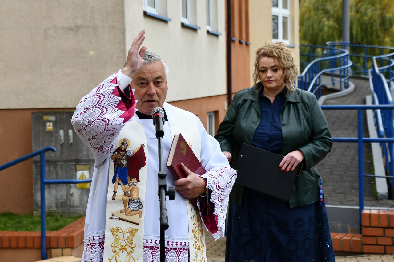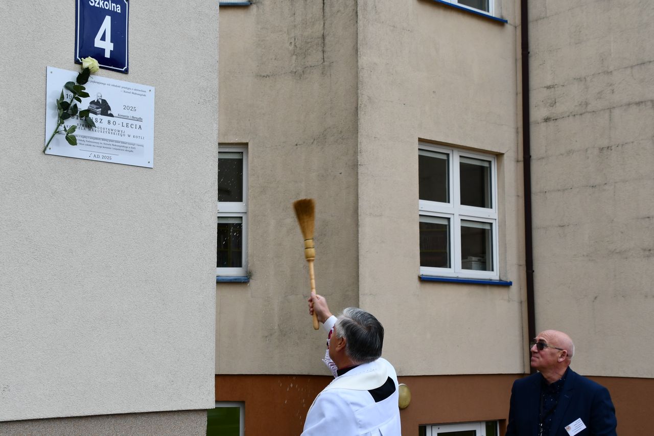 Uroczystość rozpoczęło odsłonięcie i poświęcenie tablicy pamiątkowej umieszczonej na budynku szkoły.