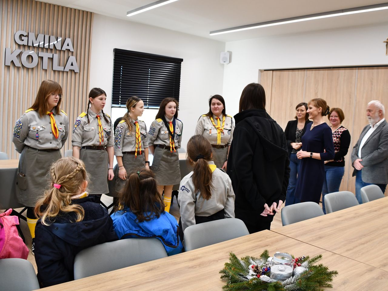 Dziś, 19 grudnia, Urząd Gminy Kotla odwiedzili wyjątkowi goście – 15. Kotelska Drużyna Harcerska „Płomień” oraz 2. Kotelska Gromada Zuchów „Radosne Iskierki” pod opieką phm. Ewy Chorąży. Harcerze przynieśli Betlejemskie Światło Pokoju – symbol pokoju, nadziei i braterstwa. Z rąk harcerzy światło odebrali Wójt Gminy Kamila Suchocka-Szperlik, zastępca Wójta Gminy Barbara Rybak, Sekretarz Gminy Ewa Konarska-Jóźwiak oraz Skarbnik Gminy Krzysztof Słomiany.