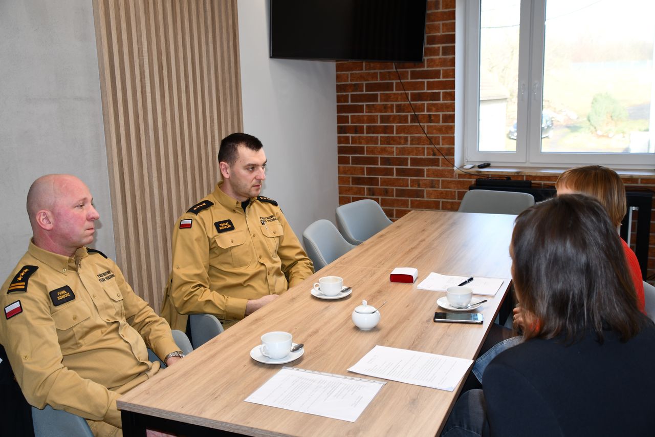 Dziś w Urzędzie Gminy Kotla odbyło się spotkanie Wójt Kamili Suchockiej-Szperlik oraz Zastępcy Wójta Barbary Rybak z przedstawicielami Państwowej Straży Pożarnej w Głogowie. W spotkaniu uczestniczył Komendant Powiatowy PSP st. bryg. Paweł Dziadosz wraz ze swoim zastępcą st. kpt. Tomaszem Michalskim. Rozmowy dotyczyły szeroko rozumianej współpracy pomiędzy samorządem Gminy Kotla, jednostkami Ochotniczych Straży Pożarnych działającymi na terenie gminy oraz Państwową Strażą Pożarną. Istotnym punktem rozmów było również wdrażanie zapisów ustawy o ochronie ludności i obronie cywilnej.