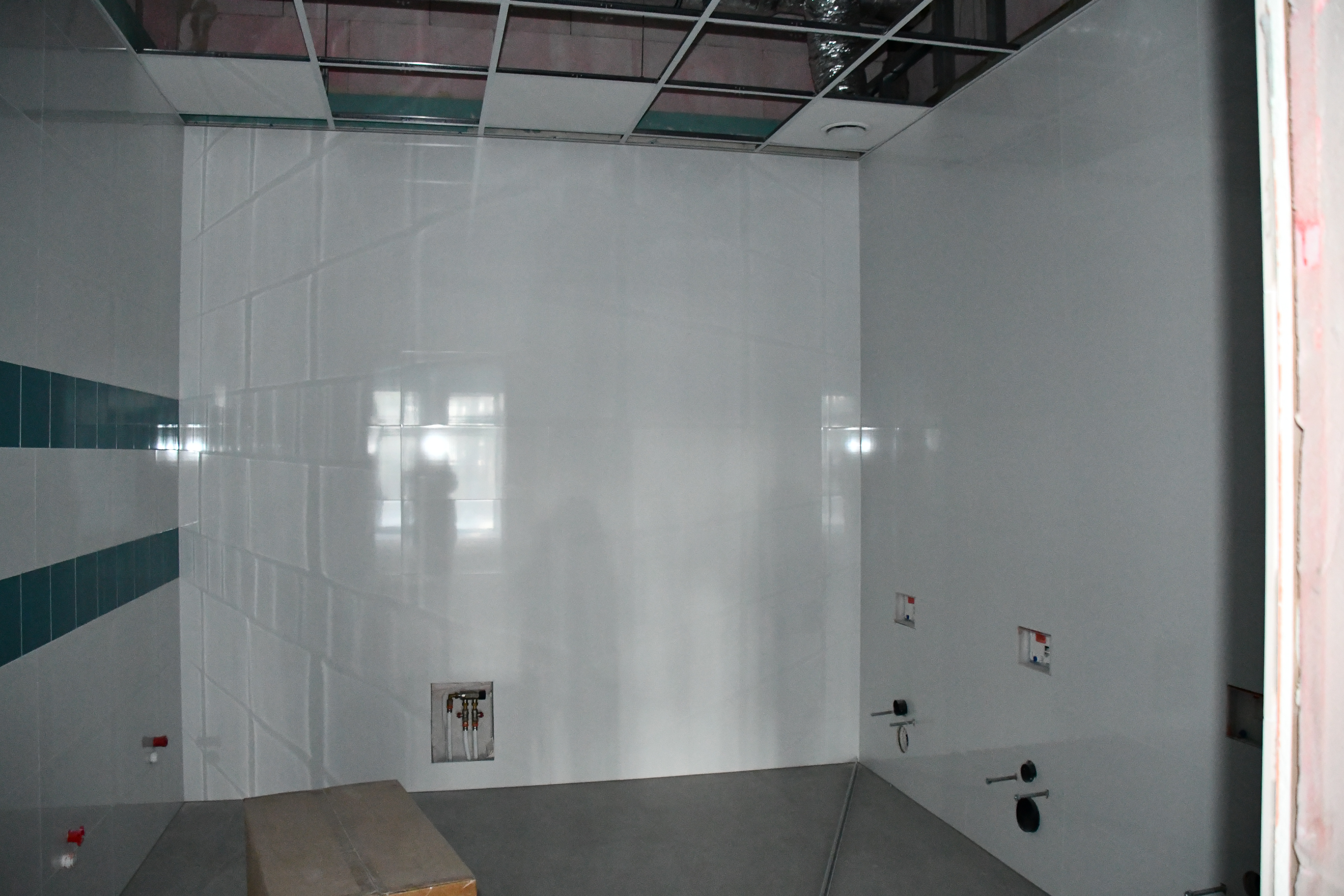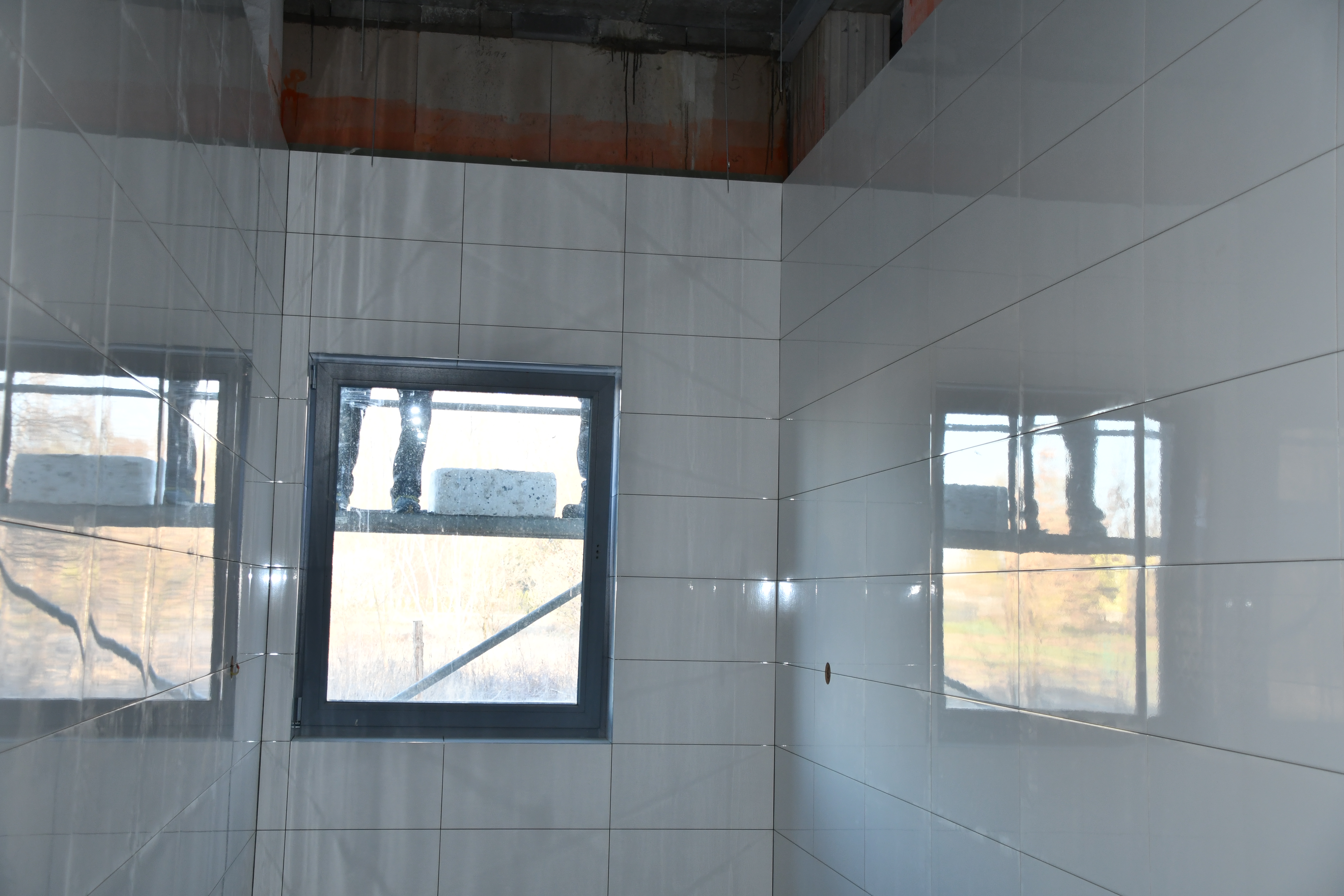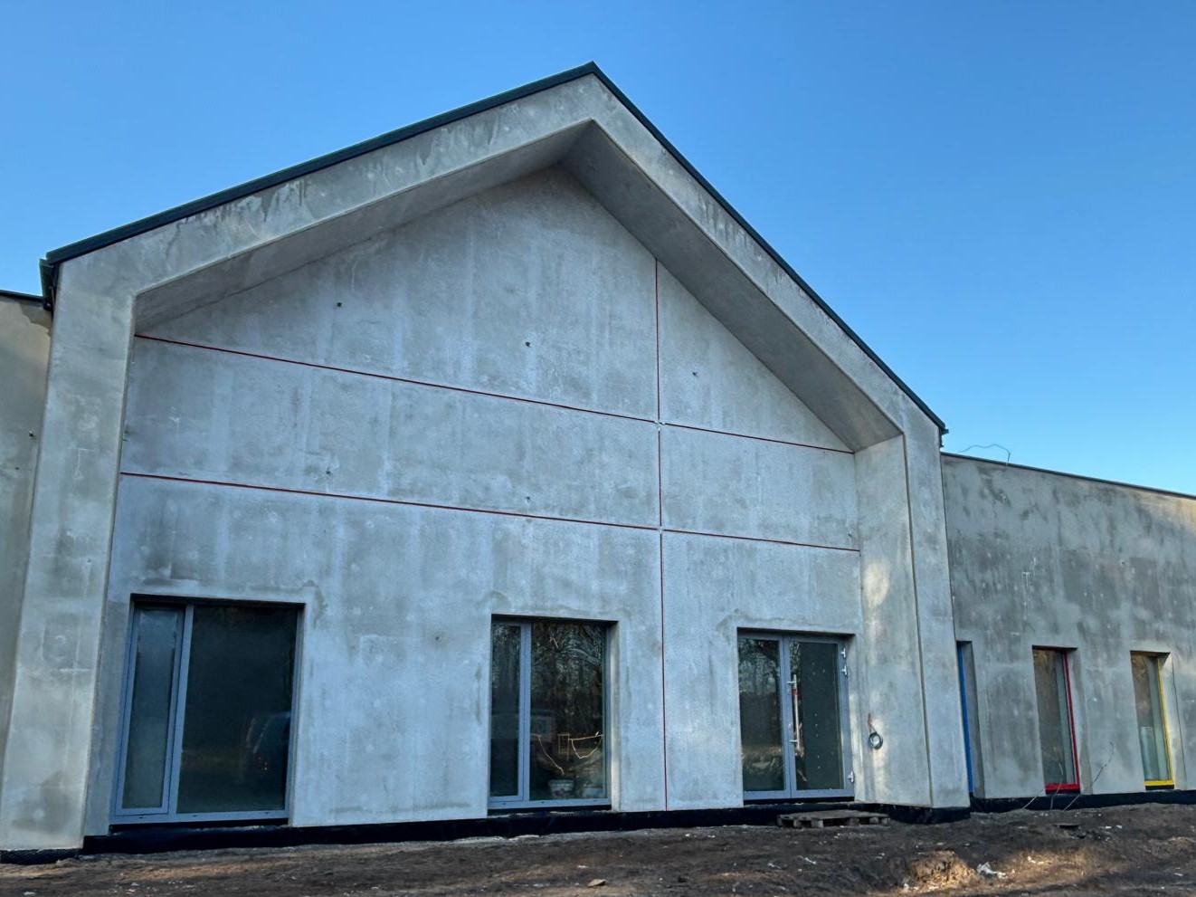 Na terenie inwestycji trwają prace wykończeniowe związane z zagospodarowaniem terenu. Równolegle realizowane są prace wewnątrz budynku oraz prace przy elewacji, które stopniowo nadają obiektowi jego ostateczny wygląd.