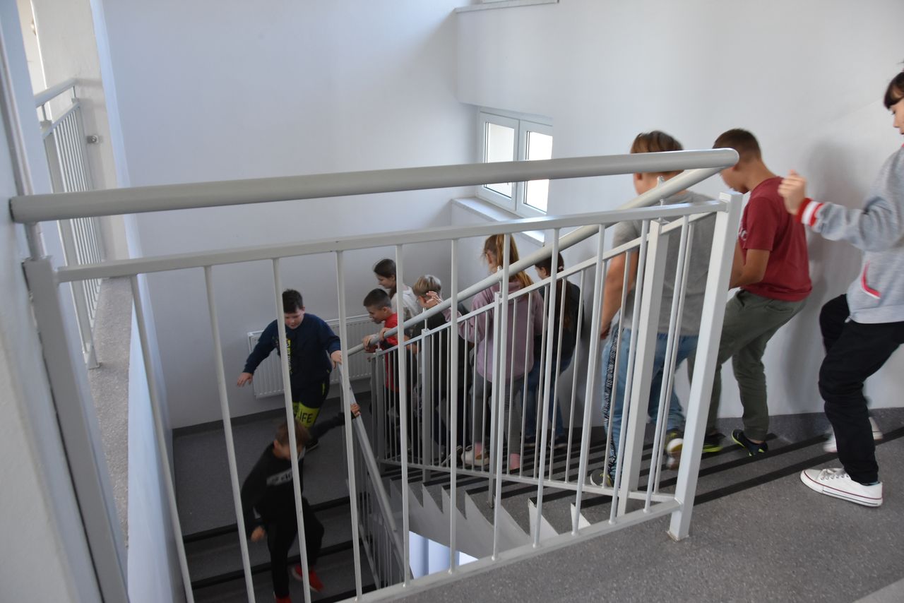 Dzisiaj (23.09) odbyła się próbna ewakuacja w naszej szkole. Na sygnał dwóch dzwonków wszyscy uczniowie i pracownicy szkoły opuścili budynek szkoły i stanęli na boisku szkolnym – czyli w miejscu, gdzie nie było bezpośredniego zagrożenia zdrowia i życia. Akcja przebiegała szybko, sprawnie i bez zakłóceń. Łącznie ewakuowano 237 osób. -W przeprowadzeniu próbnej ewakuacji brały udział jednostki OSP z terenu naszej gminy. Celem próbnego alarmu było zapoznanie uczniów i pracowników szkoły z zastosowaniem procedur dotyczących zachowania w przypadku powstania zagrożenia i sprawdzenie skuteczności przyjętej metody alarmowania, sprawdzenie umiejętności powiadamiania służb ratunkowych, a także praktycznie sprawdzenie planu i zasad ewakuacji. Dziękuję Ochotniczym Strażom Pożarnym z Kotli, Chociemyśli i Grochowic za przeprowadzenie ćwiczeń - mówi Artur Szlempo Komendant Gminny Ochrony Przeciwpożarowej w Gminie Kotla.