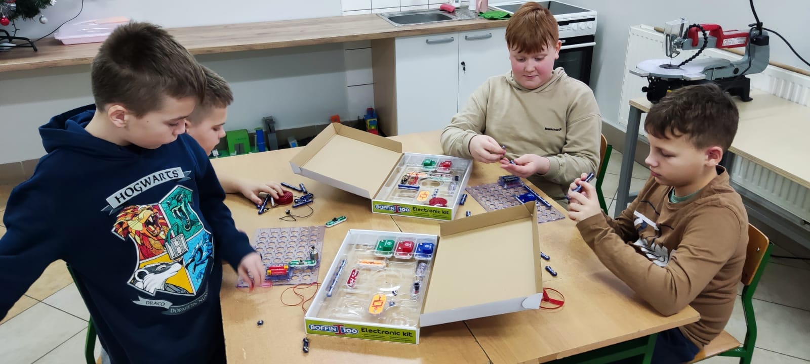 Mistrzowie techniki w ramach zajęć korzystali z zestawów w Laboratorium Przyszłości tworząc różnego rodzaju obwody elektryczne, sygnalizacyjne, alarmy i symulatory gier kosmicznych. Jedna z grup stworzyła radioodbiornik FM. Zajęcia przyniosły dużo radości i cieszyły się bardzo dużym zainteresowaniem.