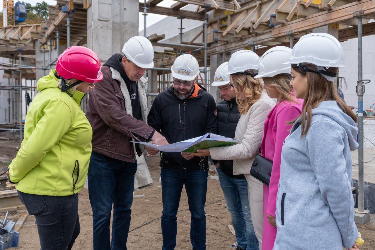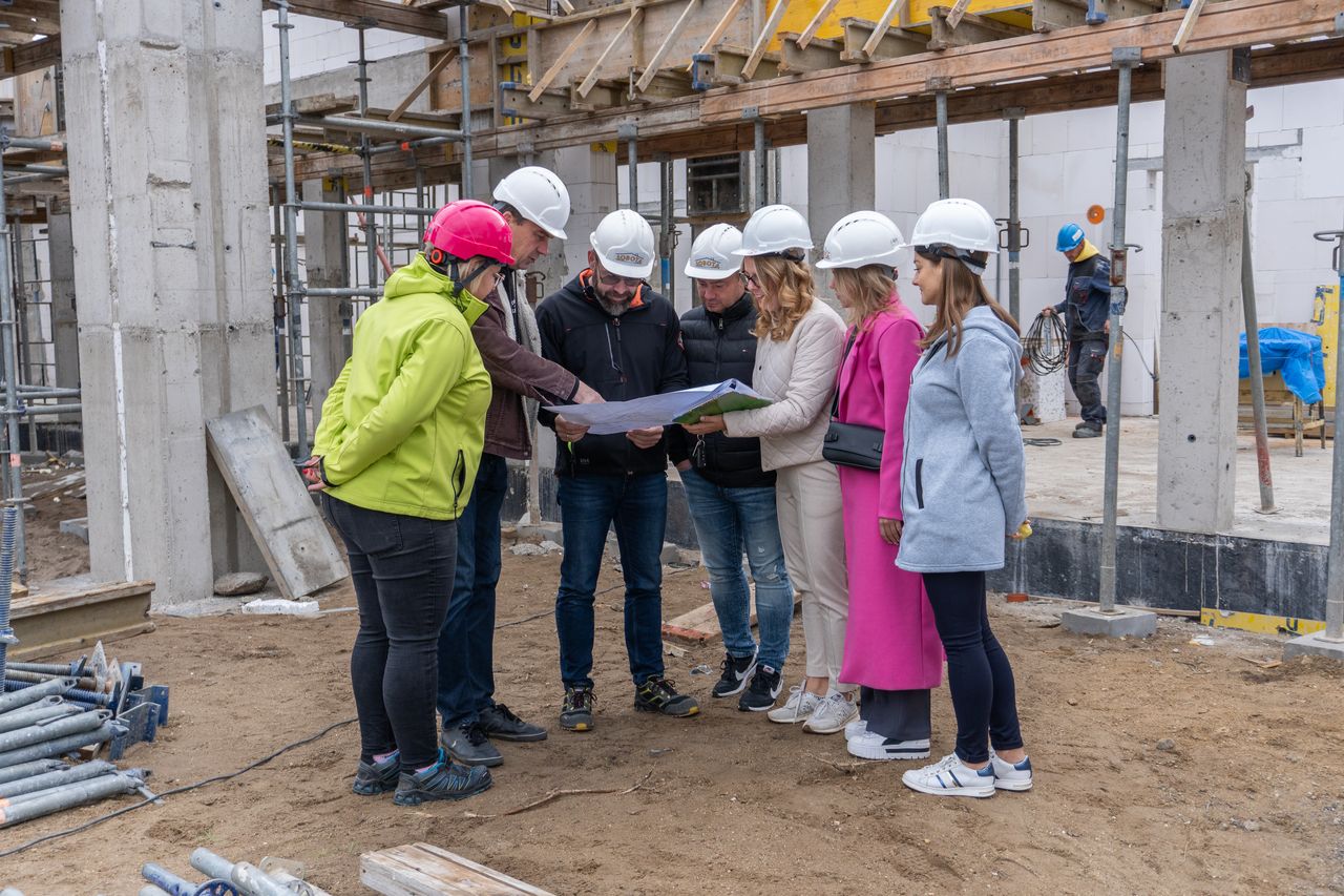 - „Cieszę się, że nowe przedszkole tak szybko rośnie w naszych oczach. Już w przyszłym roku szkolnym 150 dzieci będzie mogło poznawać świat w nowoczesnym środowisku.” – dodała Wójt Kamila Suchocka-Szperlik.