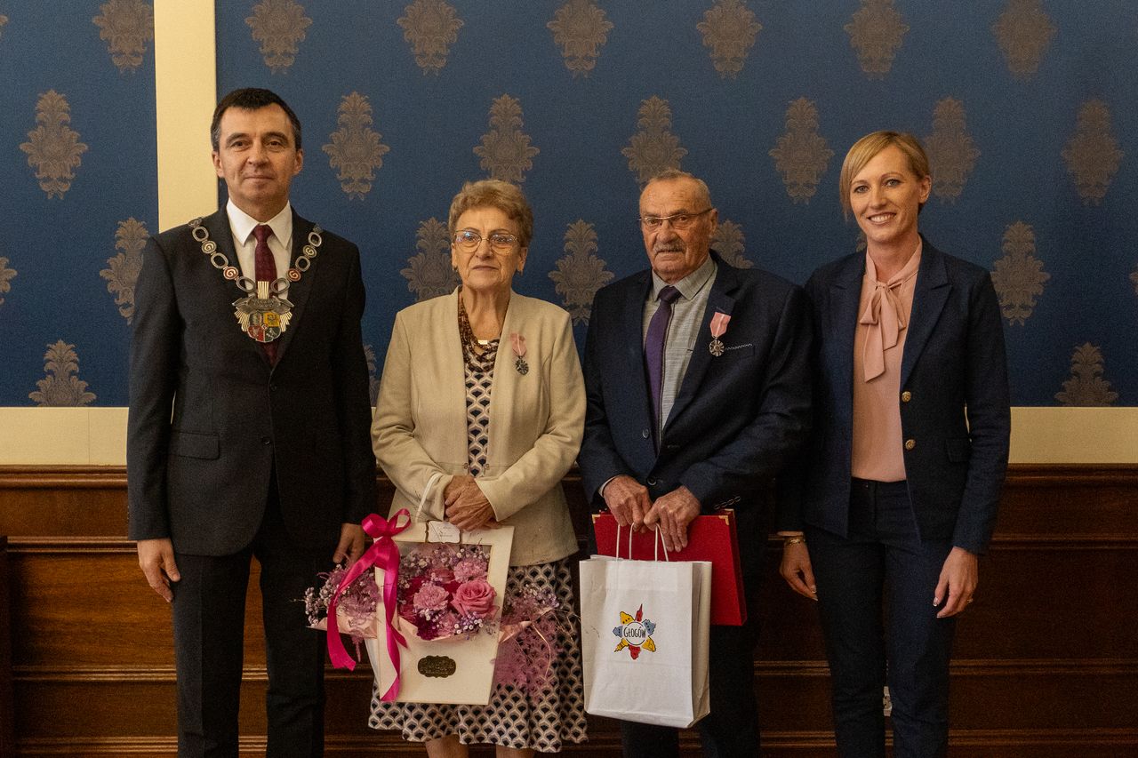 Dziś, 01.10 w głogowskim ratuszu miało miejsce wyjątkowe wydarzenie – cztery pary małżeńskie z Gminy Kotla obchodziły jubileusz 50-lecia wspólnego życia. Złote gody obchodzili Regina i Julian Juszczakowie, Ewa i Zygmunt Szalińscy, Krystyna i Józef Szkudlarek oraz Teresa i Marian Walendowscy.