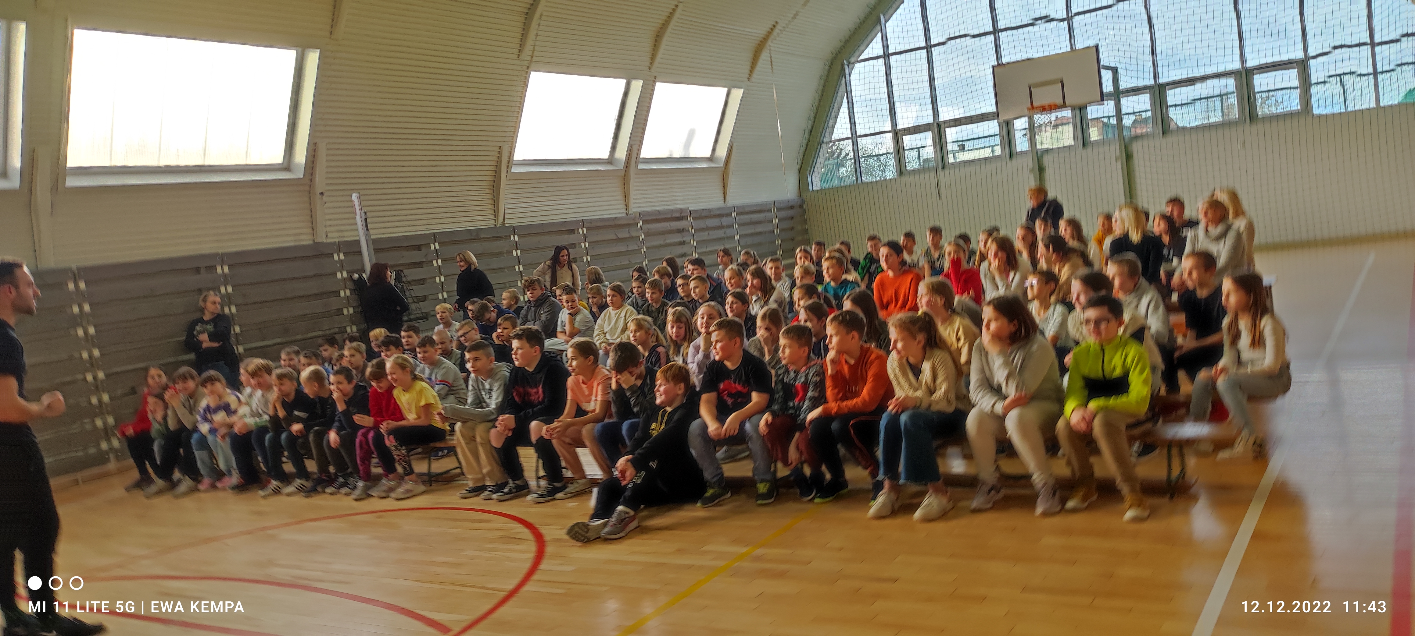 Uczniowie klas IV- VI obejrzeli spektakl ,,Wielka ucieczka”, podczas którego jeden z bohaterów, „Giętki” uświadomił młodym widzom, jakie konsekwencje niesie za sobą sięganie po używki, a co najważniejsze wskazał w jaki sposób odmawiać i wzmacniać w sobie postawę asertywną, a także gdzie szukać wsparcia w przypadku przeżywania trudności. Aktorzy w przesłaniu wskazali również na to, jakie wartości ma rodzina i relacje z jej członkami, szczególnie ze starszym pokoleniem. Dzięki bezpośredniej zabawie z publicznością, oryginalnym bohaterom i strojom spektakl dostarczył uczniom świetnej zabawy i refleksji nad niebezpieczeństwami, jakie na nich czekają.