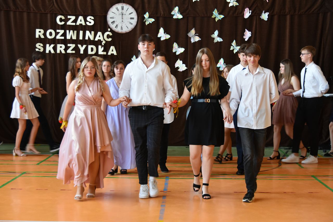 Dzisiaj (23.06) klasy ósme uroczyście zakończyły rok szkolny. Była to niezwykle piękna i podniosła uroczystość. Tę wyjątkową chwilę rozpoczął wytworny polonez w wykonaniu ósmoklasistów, a następnie klasy ósme zaprezentowały część artystyczną. Gratulacje odebrali uczniowie, którzy zdobyli najwyższą średnią w szkole oraz odnieśli największe sukcesy zarówno w nauce jak i w konkursach. Były chwile refleksji, wzruszeń, zadumy, ale i radości. W uroczystości uczestniczyli: Wójt Gminy Kotla Łukasz Horbatowski, ks. kanonik Andrzej Skoczylas oraz Dyrektor GOPS w Kotli Dorota Młodecka.
