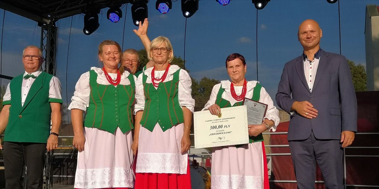 Tradycyjnie główną atrakcją tego dnia były występy zespołów folklorystycznych z terenu powiatu głogowskiego. Na scenie dzielnie reprezentowały nas dwa zespoły: "Wrzos" i "Grochowiczanki", których występy nagrodzone zostały gromkimi brawami. Serdecznie dziękujemy naszym mieszkańcom zaangażowanym w przygotowanie stoiska i wypieków oraz za obsługę stoiska w trakcie imprezy, a naszym zespołom za pełne wdzięku występy. Gminnego Ośrodkowi Kultury i Sportu w Kotli dziękujemy za pomoc w organizacji.