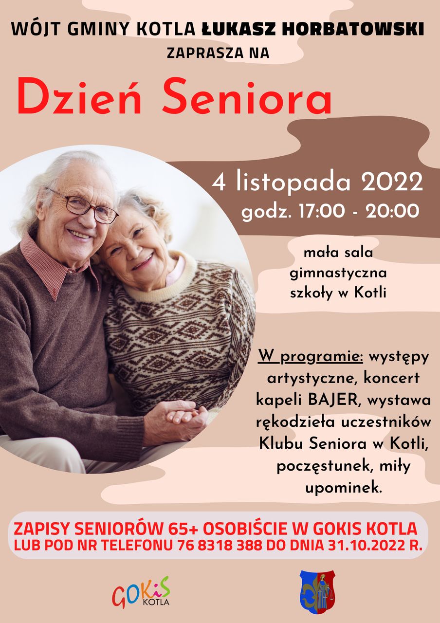 Wójt Gminy Kotla Łukasz Horbatowski zaprasza na Gminny Dzień Seniora, który odbędzie się 4 listopada 2022 r. (piątek) o godz. 17.00 w małej sali gimnastycznej szkoły w Kotli.