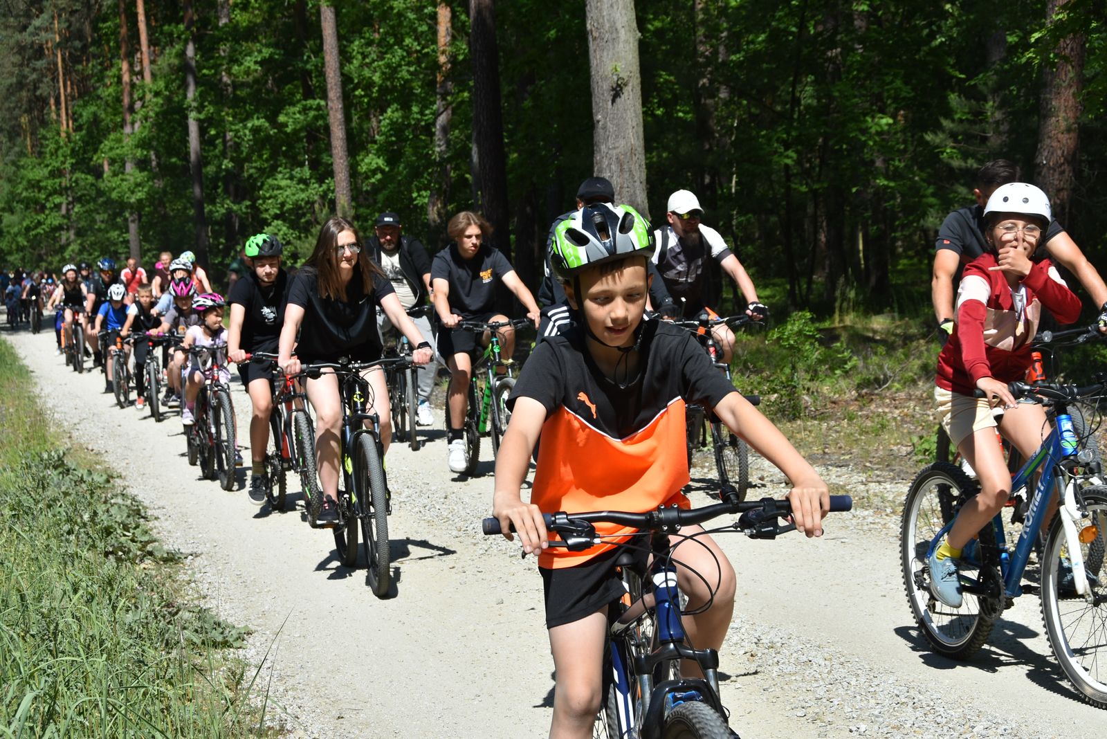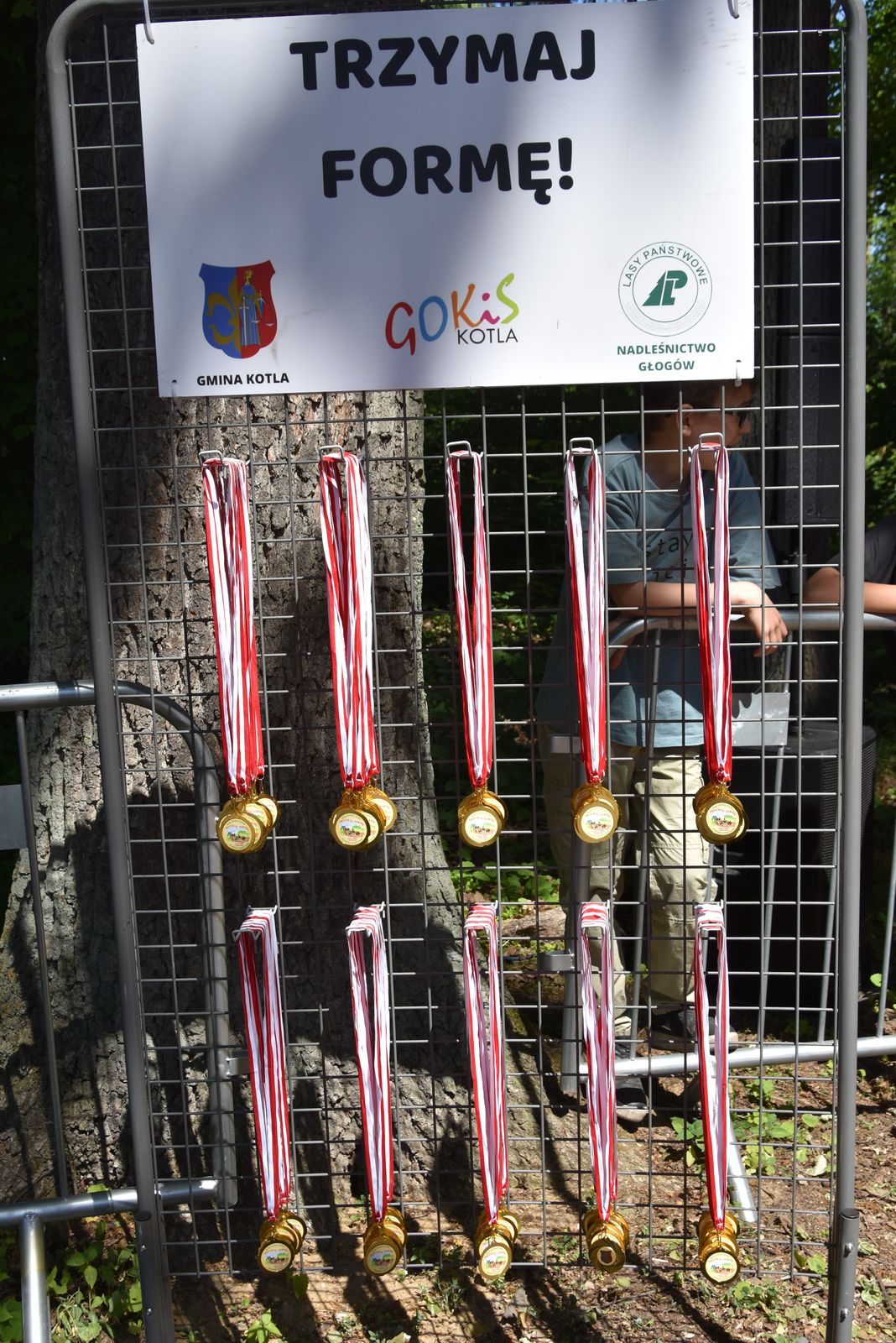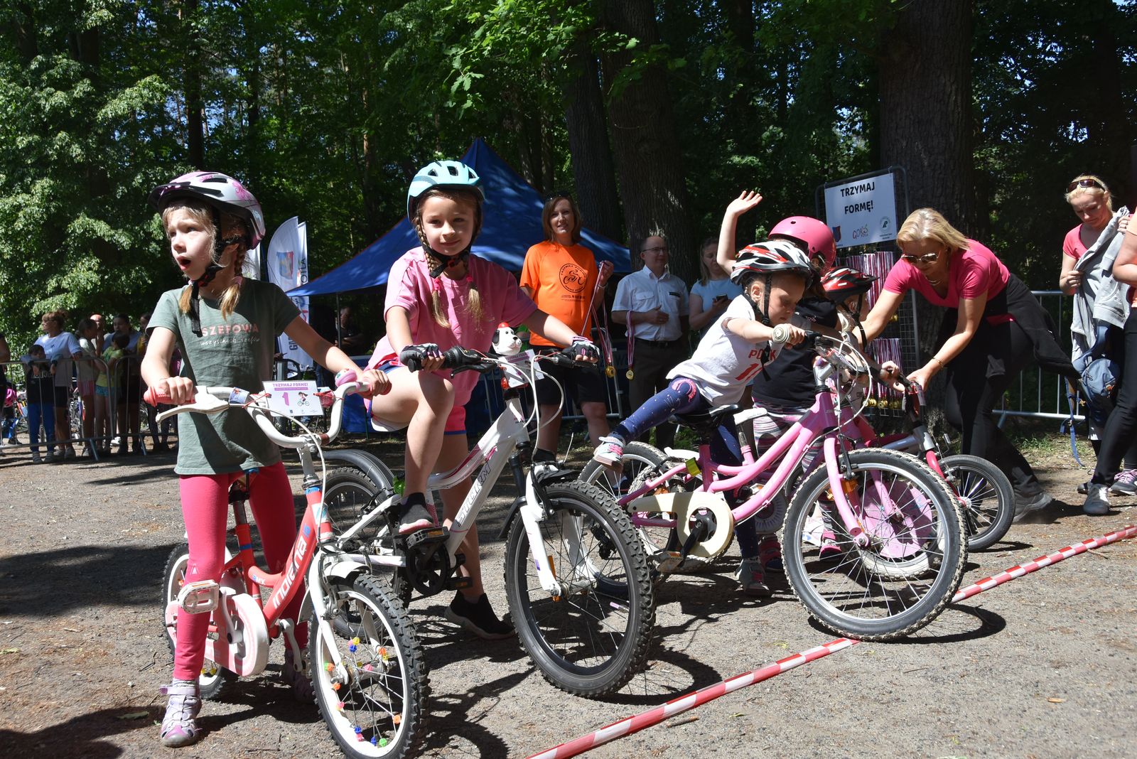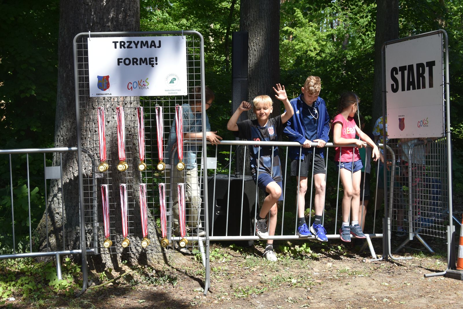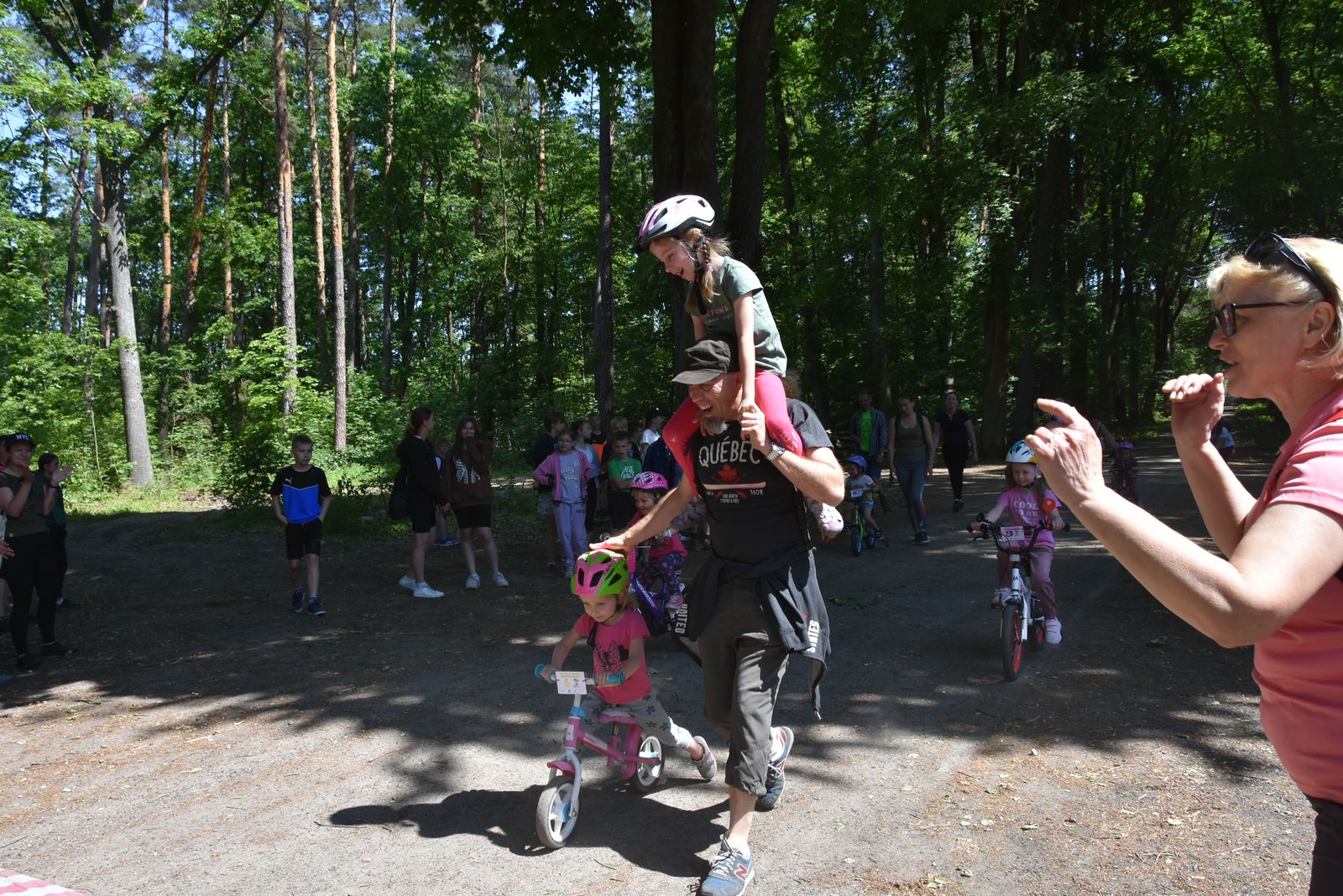 TRZYMAJ FORMĘ!” za nami. Pogoda dopisała, uśmiechy nie schodziły z twarzy uczestników. W wydarzeniu wzięło udział ponad 200 osób. Dzisiaj (04.06) o godzinie 10:00 spod szkoły w Kotli do Leśnej Doliny wyruszył peleton z uczniami, rodzicami oraz nauczycielami, aby tam zmagać się w wyścigach rowerowych. W rywalizacji udział wzięło blisko 100 uczestników w sześciu kategoriach. Najmłodsi mieli do przebycia trasę 150 i 200 metrów, starsi natomiast w zależności od wieku mieli do pokonania trasę 1 km lub 2 km. Uczestnicy rajdu rywalizowali ze sobą walcząc o miejsca i tak oto prezentują się wyniki w następujących kategoriach: