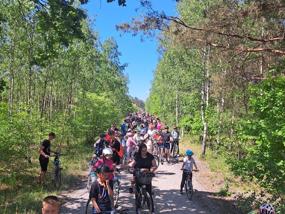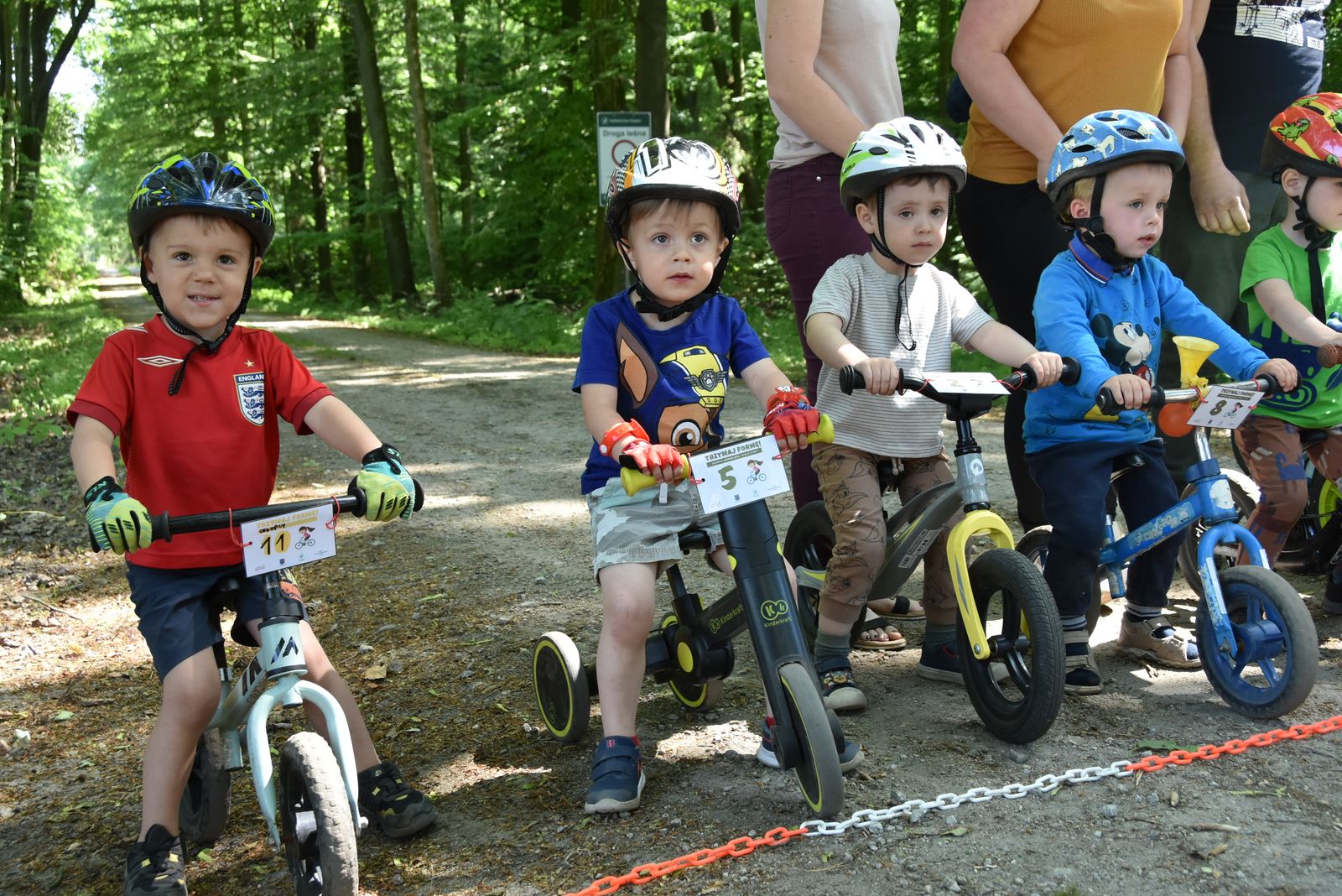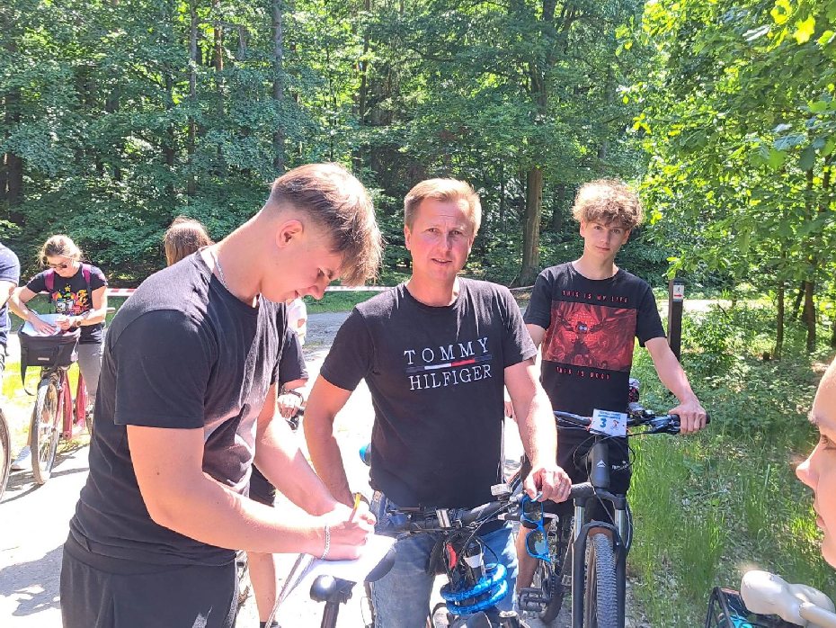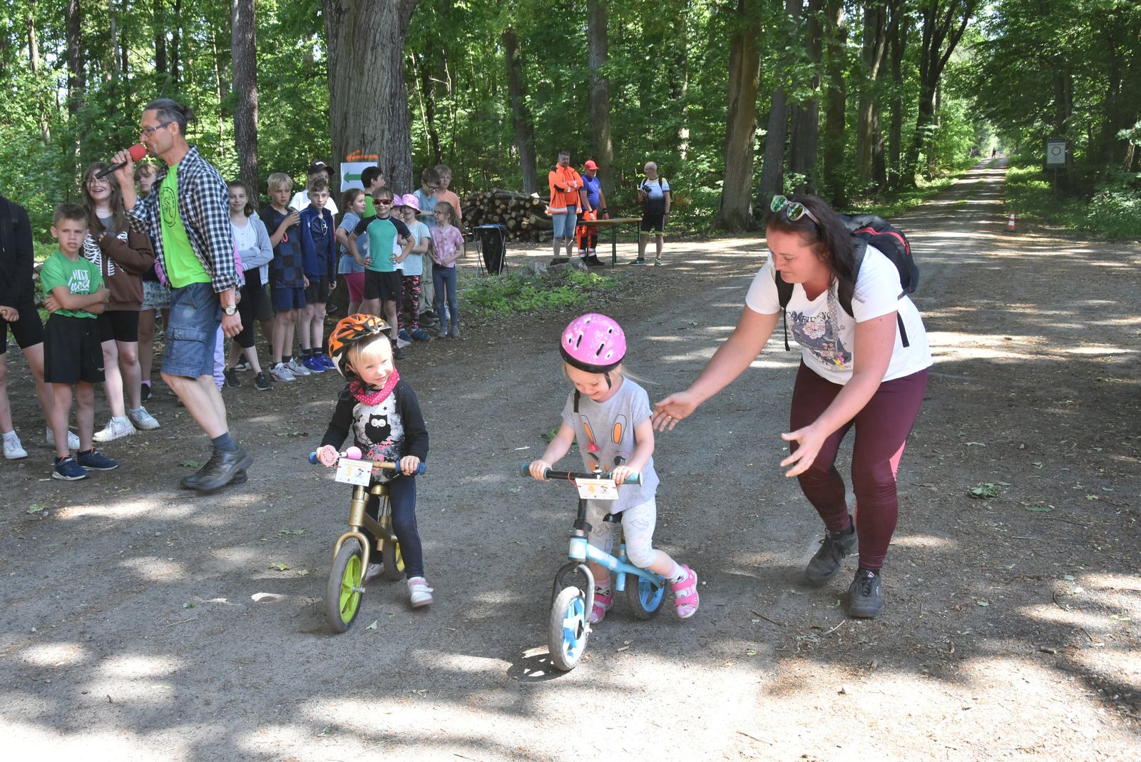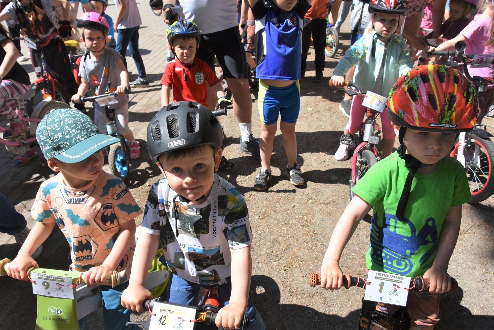 TRZYMAJ FORMĘ!” za nami. Pogoda dopisała, uśmiechy nie schodziły z twarzy uczestników. W wydarzeniu wzięło udział ponad 200 osób. Dzisiaj (04.06) o godzinie 10:00 spod szkoły w Kotli do Leśnej Doliny wyruszył peleton z uczniami, rodzicami oraz nauczycielami, aby tam zmagać się w wyścigach rowerowych. W rywalizacji udział wzięło blisko 100 uczestników w sześciu kategoriach. Najmłodsi mieli do przebycia trasę 150 i 200 metrów, starsi natomiast w zależności od wieku mieli do pokonania trasę 1 km lub 2 km. Uczestnicy rajdu rywalizowali ze sobą walcząc o miejsca i tak oto prezentują się wyniki w następujących kategoriach:
