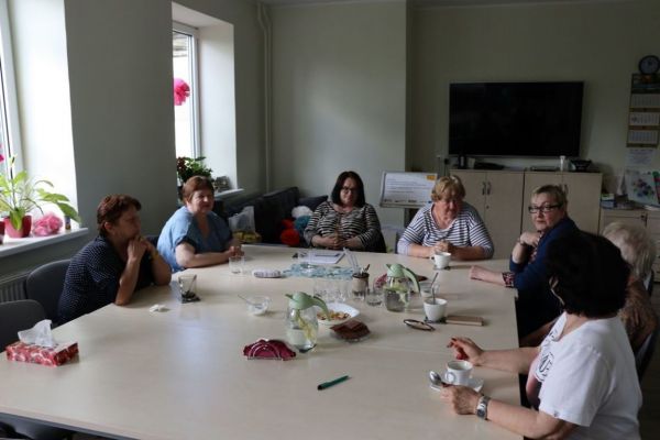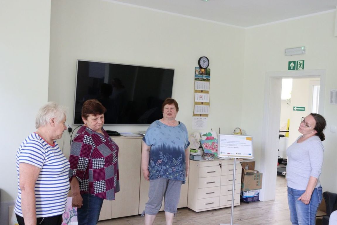 Na czerwcowych zajęciach ruchowych - gimnastyce Pani Marta poprzez wykonywane ćwiczenia z Uczestnikami Projektu dba o ich radość życia, dobre samopoczucie oraz sprawność fizyczną.
