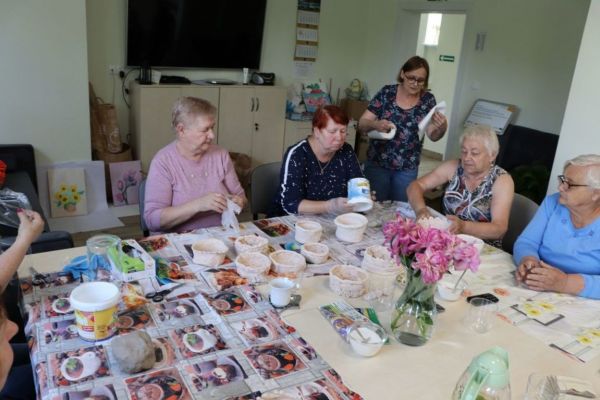 Uczestnicy Klubu Seniora podczas czerwcowych zajęć z P. Ewą, która poprowadziła w dalszym ciągu zajęcia z rękodzieła zdobili wykonane przez siebie piękne ceramiczne miseczki. Lepienie z gliny zmniejsza stres, uspokaja i rozwija nowe zdolności tak więc zajęcia miały również wpływ terapeutyczny. Uczestnikom Projektu bardzo spodobała się ceramika dlatego wrócimy do nich jeszcze w tym roku.