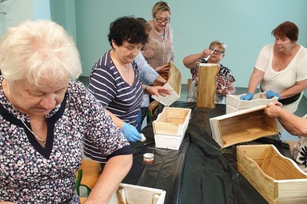 Piękne donice wykonane metodą "decupage" Seniorzy w Klubie Senior + upiększają swoje klubowe pomieszczenia. W głowie zapewne mają jeszcze mnóstwo pomysłów, a zatem będzie się sporo już wkrótce działo. Tymczasem I mała relacja zdjęciowa z ostatnich spotkań, donice z kwiatami już zdobią okna klubu.