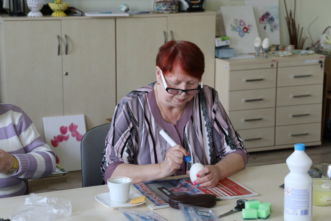 Na zajęciach z rękodzieła w Klubie Seniora pod kierunkiem Pani Renaty uczestnicy projektu zrobili piękne ażurowe pisanki, które na świątecznym stole zdecydowanie się wyróżnią. Pokrywa je delikatny, koronkowy wzór. Ażurowe pisanki zachwycają wyrafinowaniem, delikatnością i oryginalnością. Będą się wyróżniać na wielkanocnym stole, jak i w święconce. Zrobienie takiej ozdoby wielkanocnej nie jest łatwe, wymaga sprawnej ręki, ale jest warte wysiłku, a uczestnikom Klubu wyszło to naprawdę wspaniale. Zajęcia muzyczne z P. Krzysztofem upływają zawsze wesoło, a po zajęciach rozśpiewani uczestnicy projektu tryskają dobrym humorem przez resztę dnia. Na zajęciach teatralnych z P. Elżbietą uczestnicy Klubu Seniora ćwiczyli w dalszym ciągu scenkę teatralną na podstawie fragmentu bloga Joanny Kołaczkowskiej, a aby się odprężyć również ćwiczyli swoje ciała. Malarstwo olejne było tematem zajęć malarskich. Pod kierunkiem P. Marioli, która prowadzi zajęcia, uczestnicy projektu zaczęli malować piękne kompozycje kwiatowe farbami olejnymi. Sprawiło to wszystkim dużo radości.